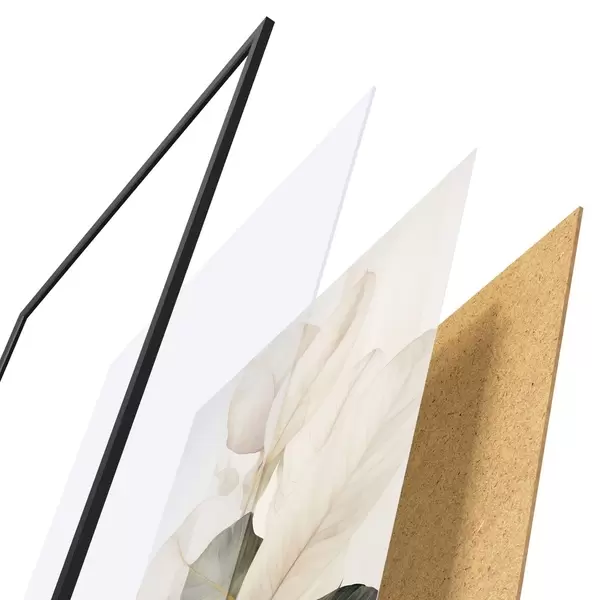 L’affiche encadrée est composée d’un cadre, d’un plexiglas, d’une image imprimée et d’un support en aggloméré. Elle est prête à être accrochée au mur grâce aux fixations situées à l’arrière.