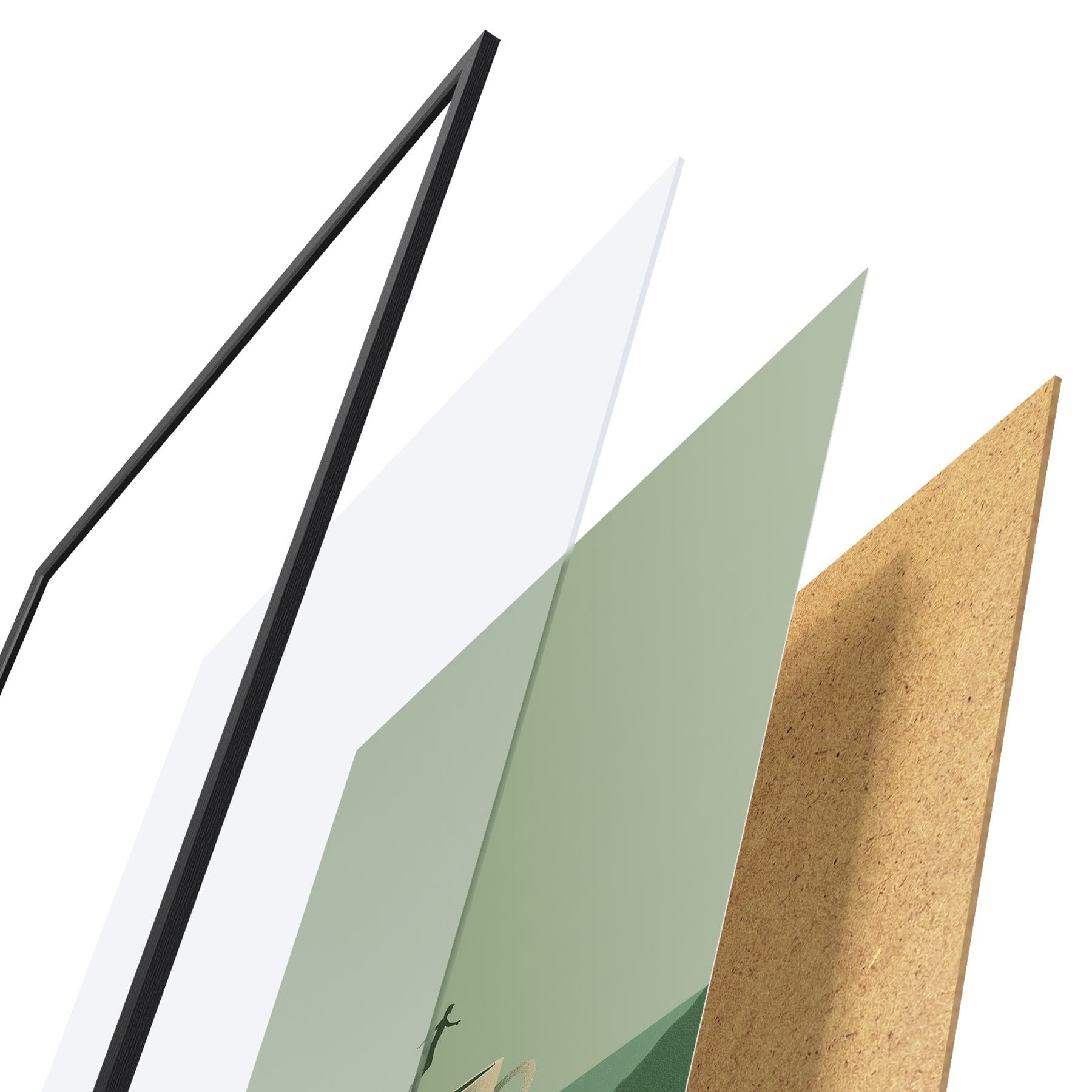 L’affiche encadrée est composée d’un cadre, d’un plexiglas, d’une image imprimée et d’un support en aggloméré. Elle est prête à être accrochée au mur grâce aux fixations situées à l’arrière.