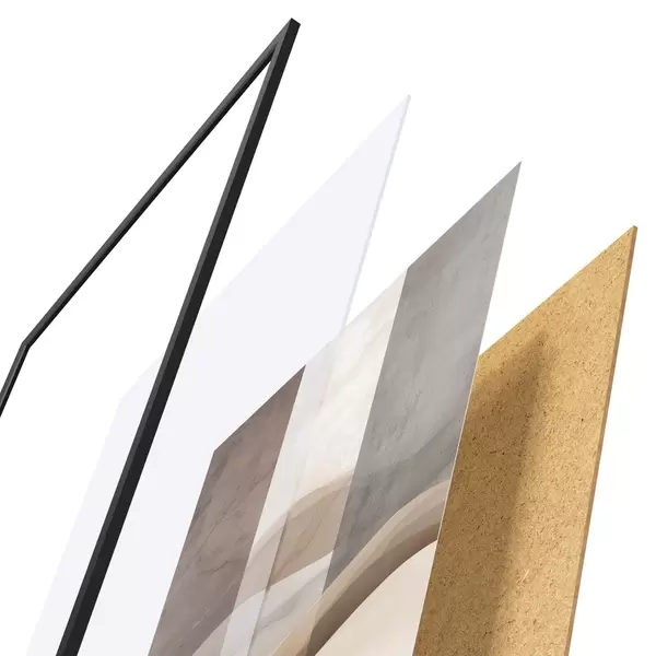L’affiche encadrée est composée d’un cadre, d’un plexiglas, d’une image imprimée et d’un support en aggloméré. Elle est prête à être accrochée au mur grâce aux fixations situées à l’arrière.