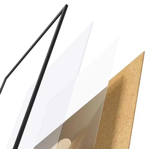 L’affiche encadrée est composée d’un cadre, d’un plexiglas, d’une image imprimée et d’un support en aggloméré. Elle est prête à être accrochée au mur grâce aux fixations situées à l’arrière.