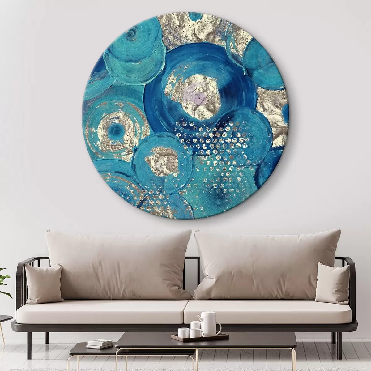 Tableaux rondes Cercles d'azur avec points d'or, peinture à l'huile r01035