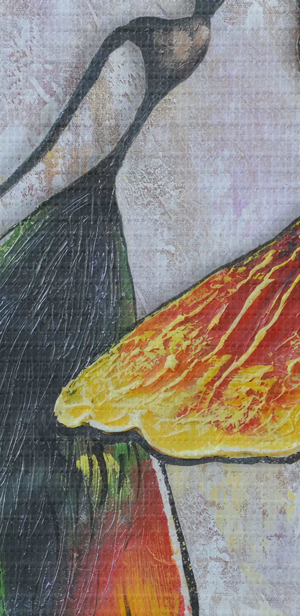 Trois types de matériaux peuvent être commandés : Economic Canvas - matériau dense et durable pour l'impression numérique, identique à la toile de peintre, surface imperméable, reproduction réaliste des détails, matériau à grain moyen. Premium Canvas - la texture ressemble à celle d'une toile de peintre (petits fils entrelacés). Reproduction douce et détaillée de l'image sur une surface mate. Eco-Premium - tissu 100 % coton de haute qualité. Grâce aux fibres naturelles de coton, le matériau est durable et résistant à l'usure. Excellente reproduction des couleurs et des détails.