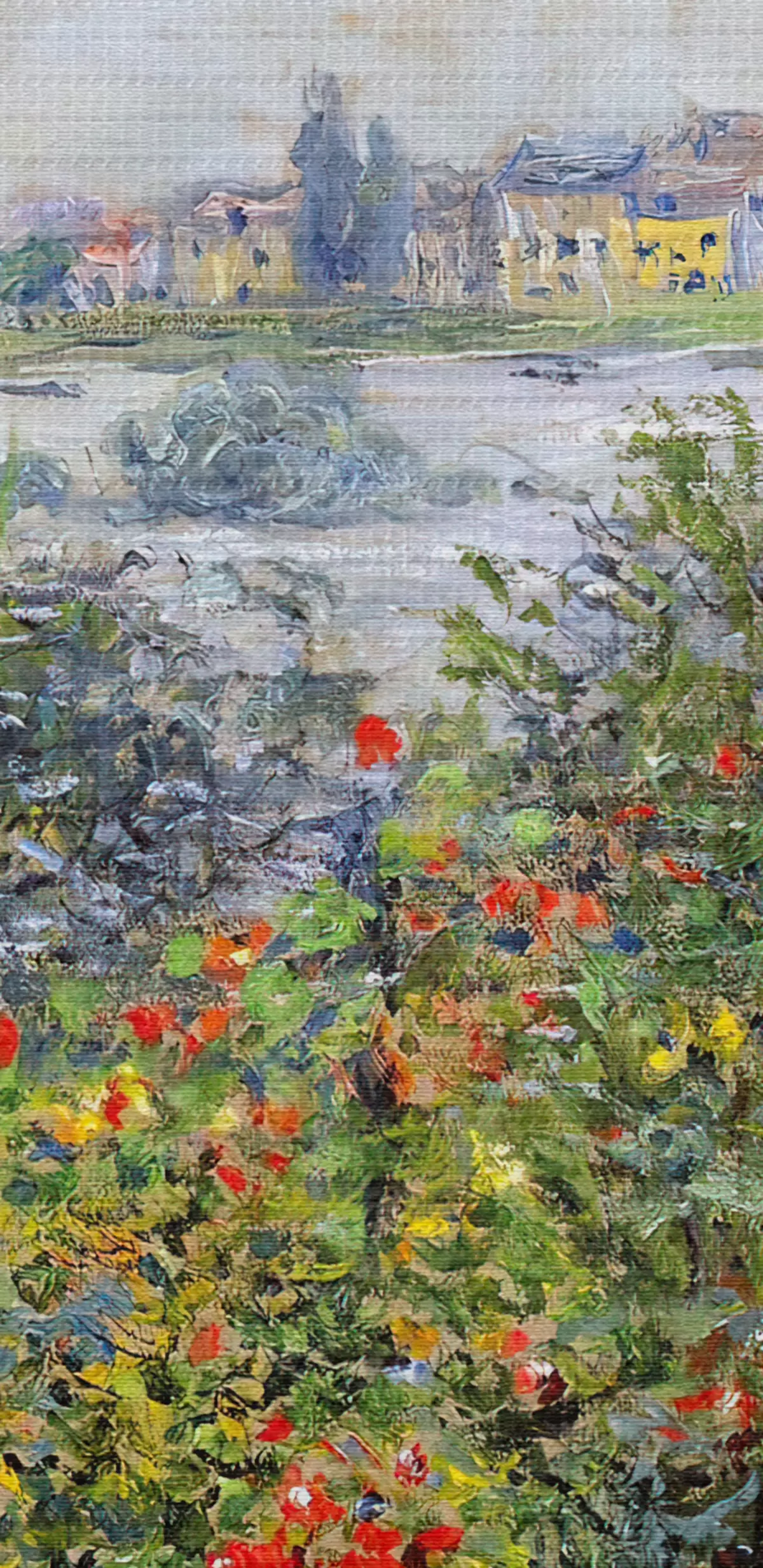 Le tissage fin des fils de cette toile ressemble à la surface des toiles d'artistes professionnels.