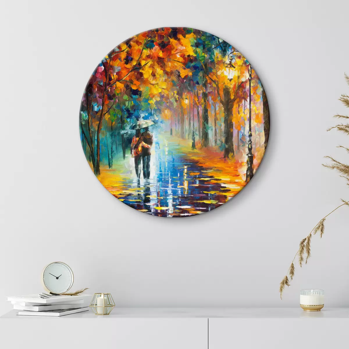 Tableaux rondes Couple sous un parapluie, automne r15186