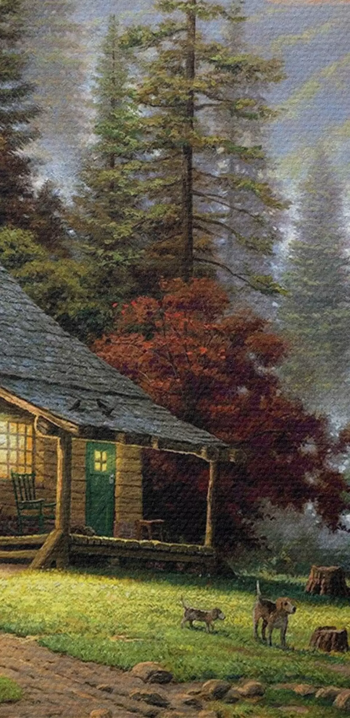 Tableaux rondes Cabane de pêcheur dans la forêt près du ruisseau Nr r15556