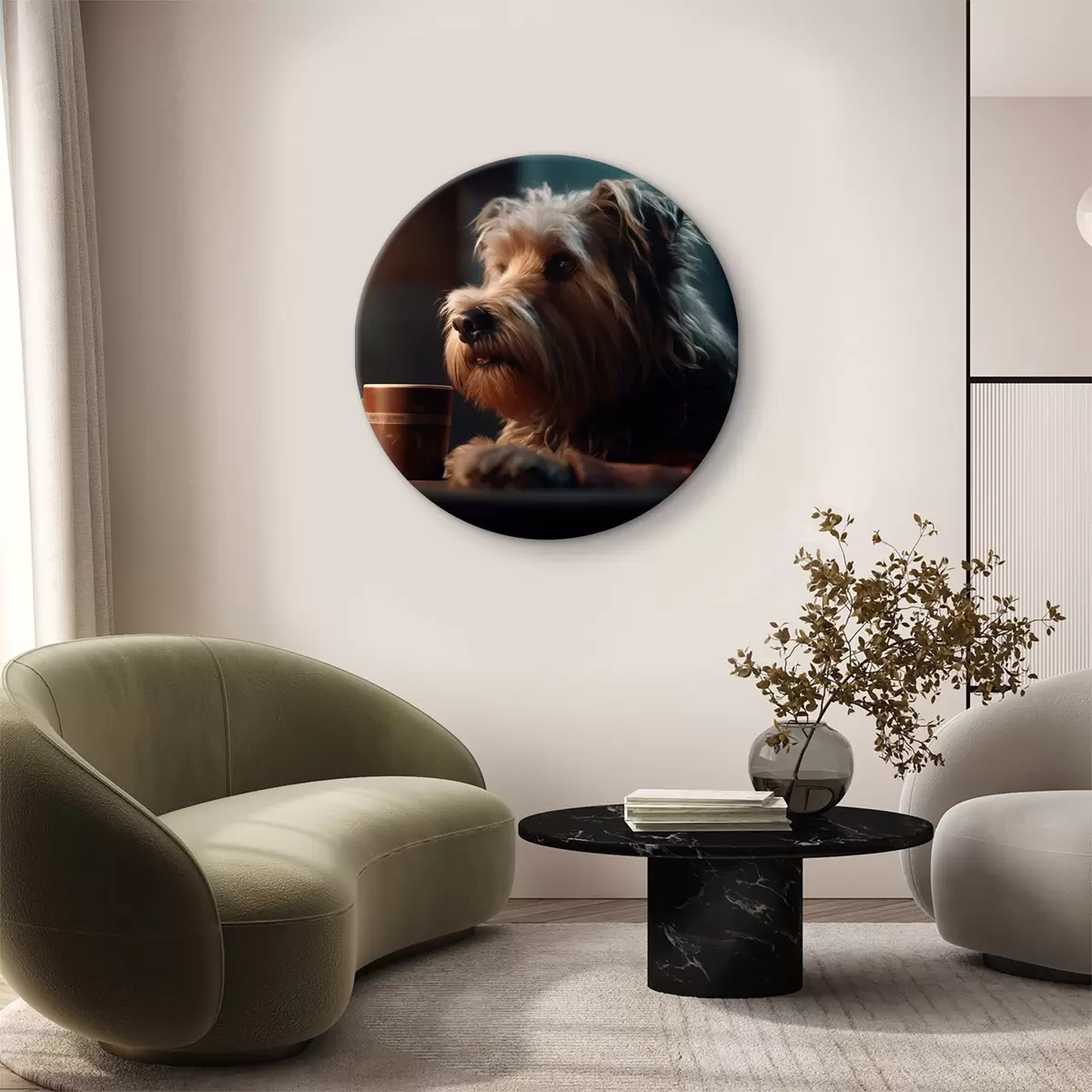 Tableaux rondes Une tasse de thé et un chien r32153