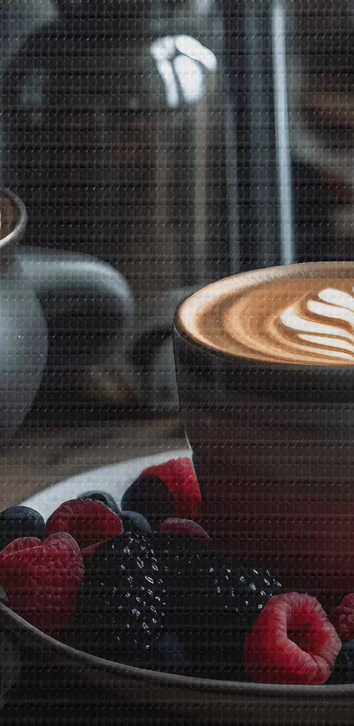 Tableaux rondes Petit-déjeuner sain avec du cappuccino Nr r32154
