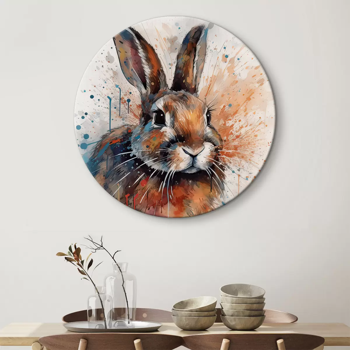 Tableaux rondes Lapin, peinture artistique, lapins et lièvres r32329