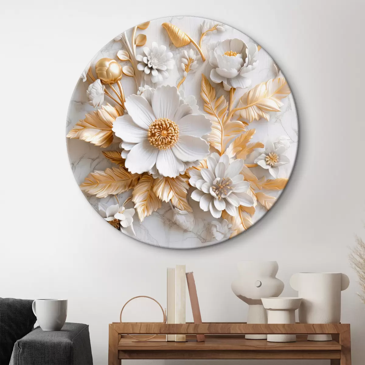 Tableaux rondes Fleurs délicates de couleur beige avec effet 3D r32778