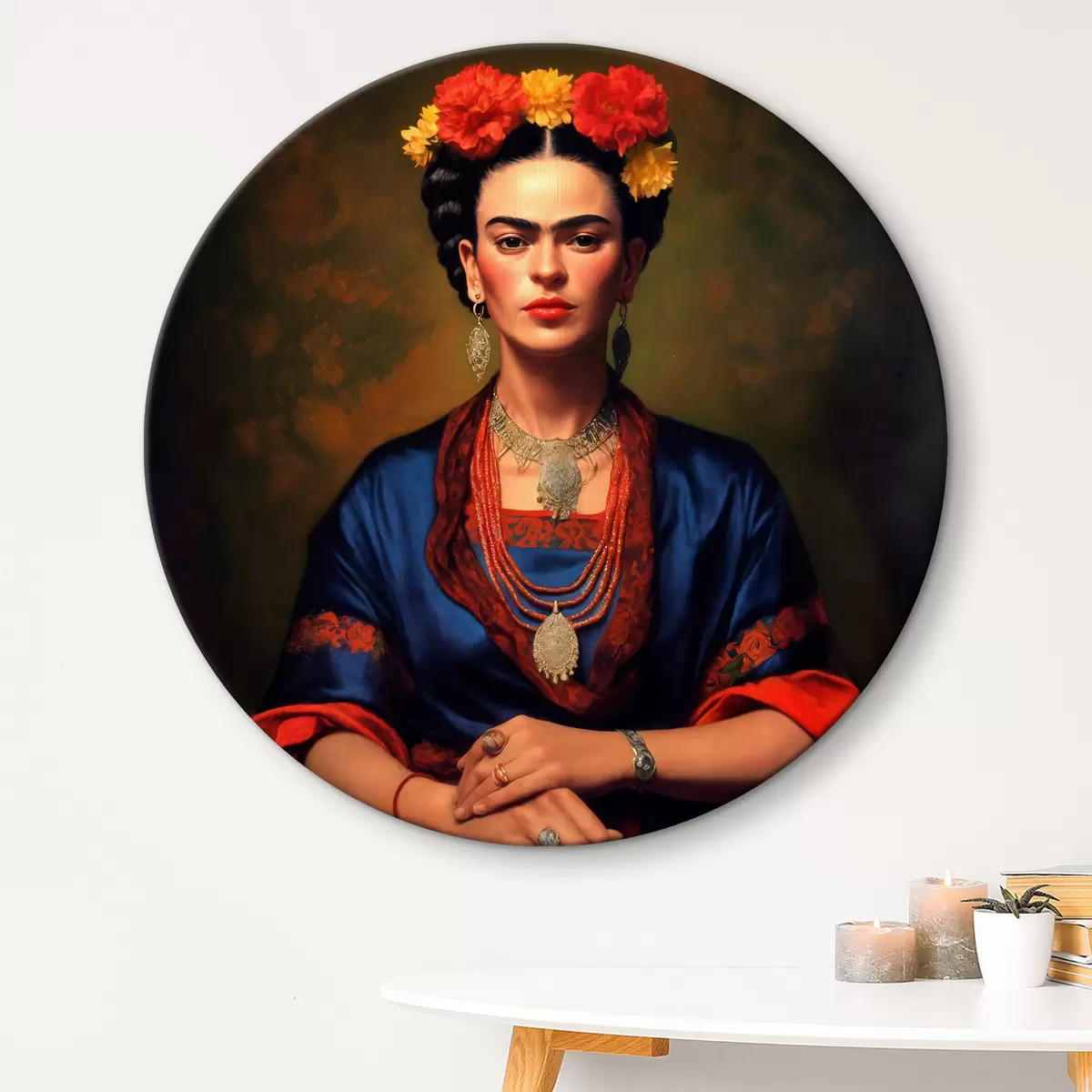 Tableaux rondes Frida Kahlo dans une robe bleue r32866