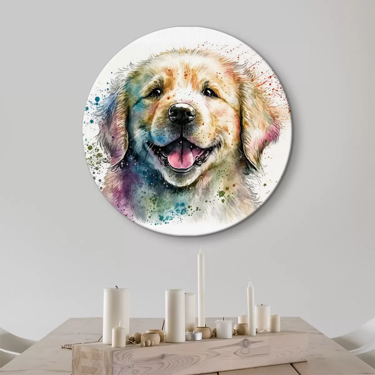 Tableaux rondes Chiot heureux dans un style aquarelle r33539