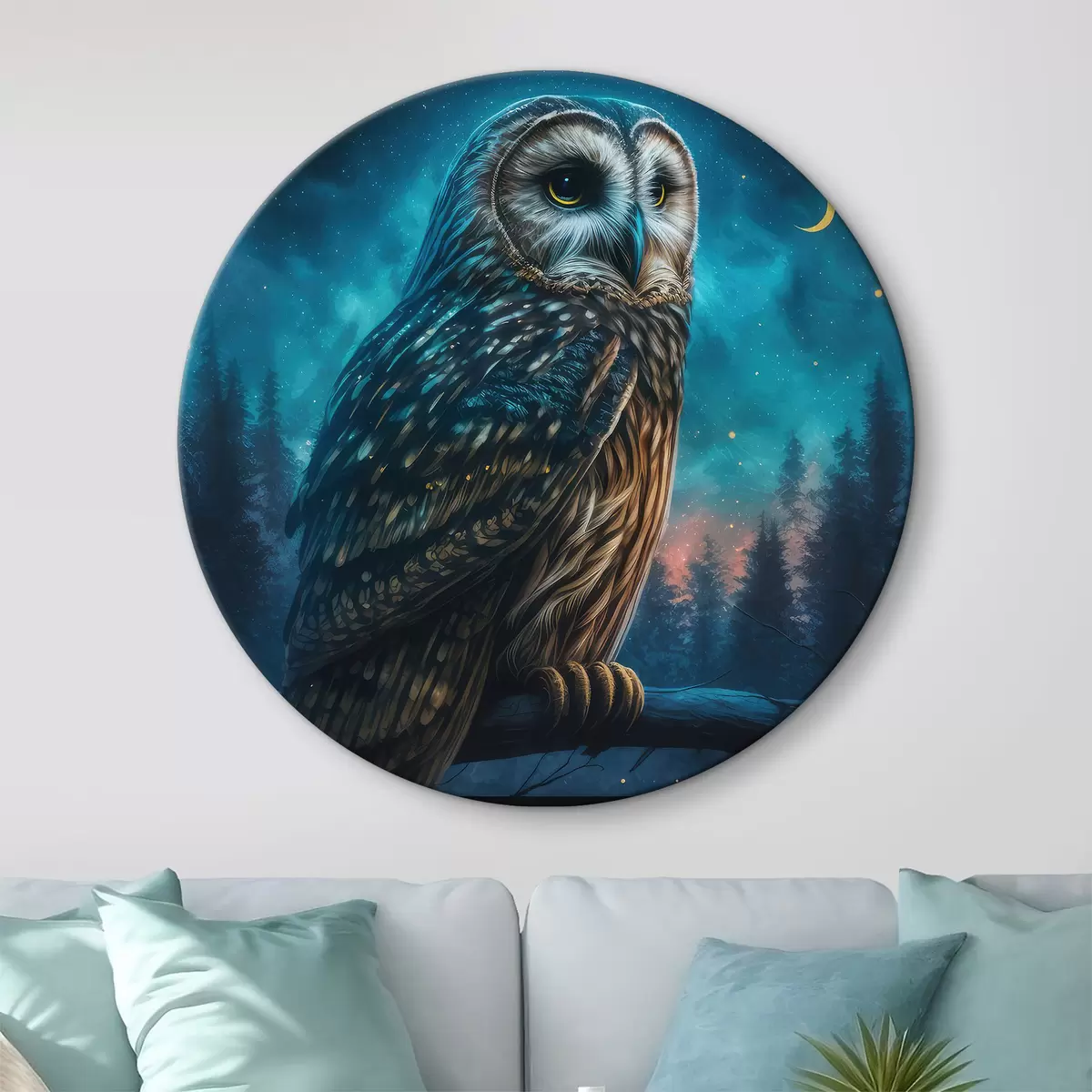 Tableaux rondes Hibou dans la forêt nocturne Nr r33544