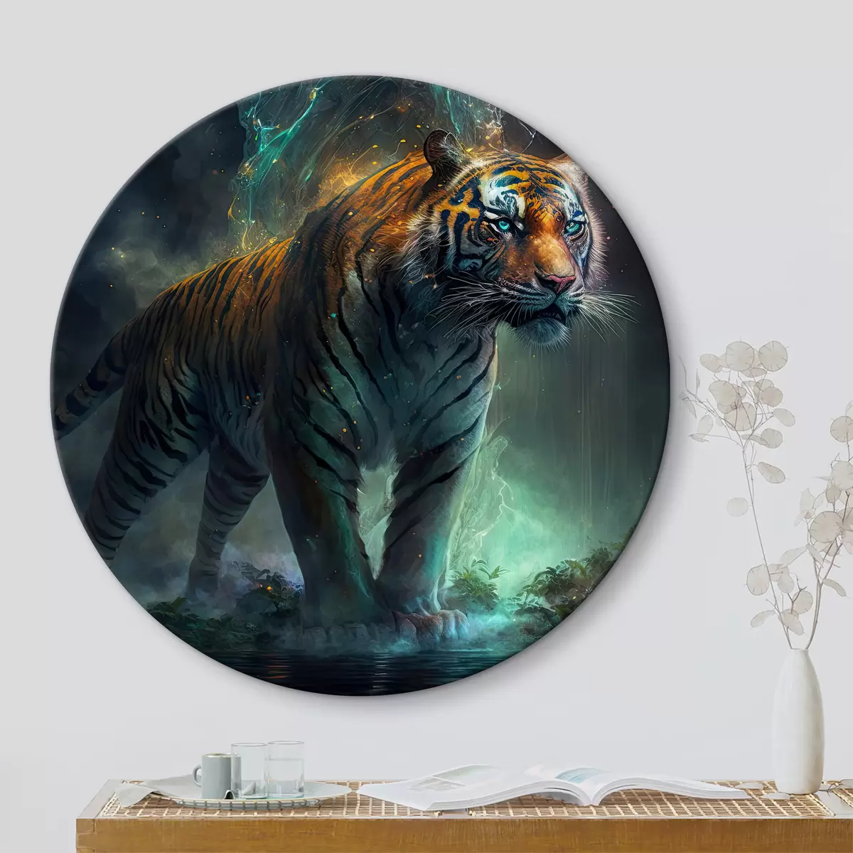 Tableaux rondes Tigre néon dessiné à la main Nr r33919