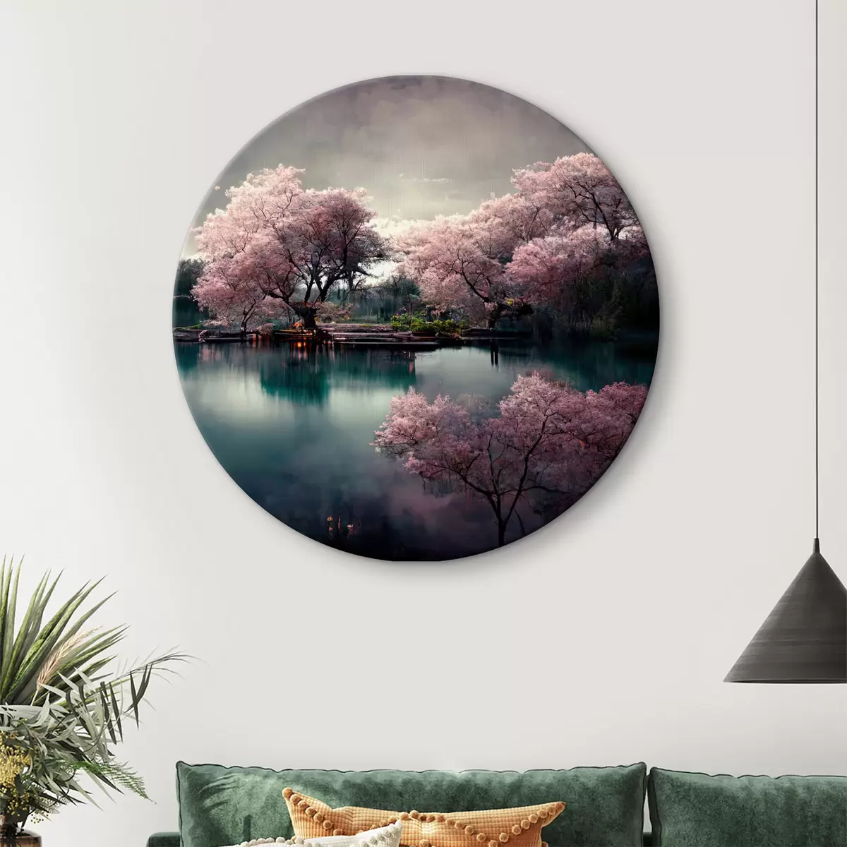 Tableaux rondes Eau, nuage et fleur Nr r34388