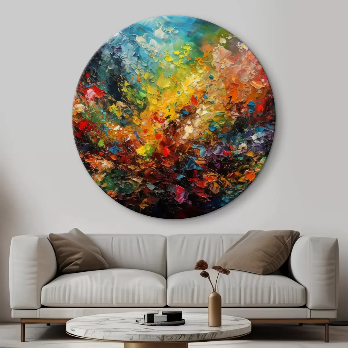 Tableaux rondes Une explosion de couleurs vives dans un style impressionniste Nr r34451
