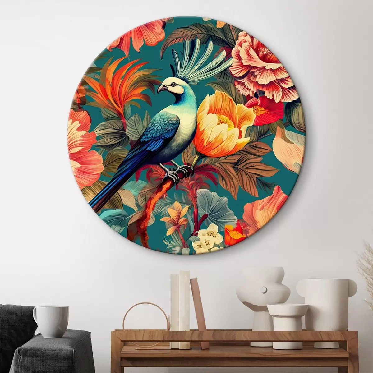 Tableaux rondes Motif esthétique tropical avec des aras Nr r34489