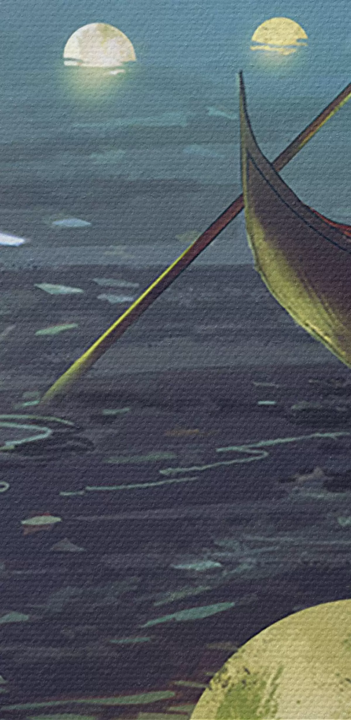 Tableaux rondes Un homme dans un bateau sur fond de lune brillante r34544
