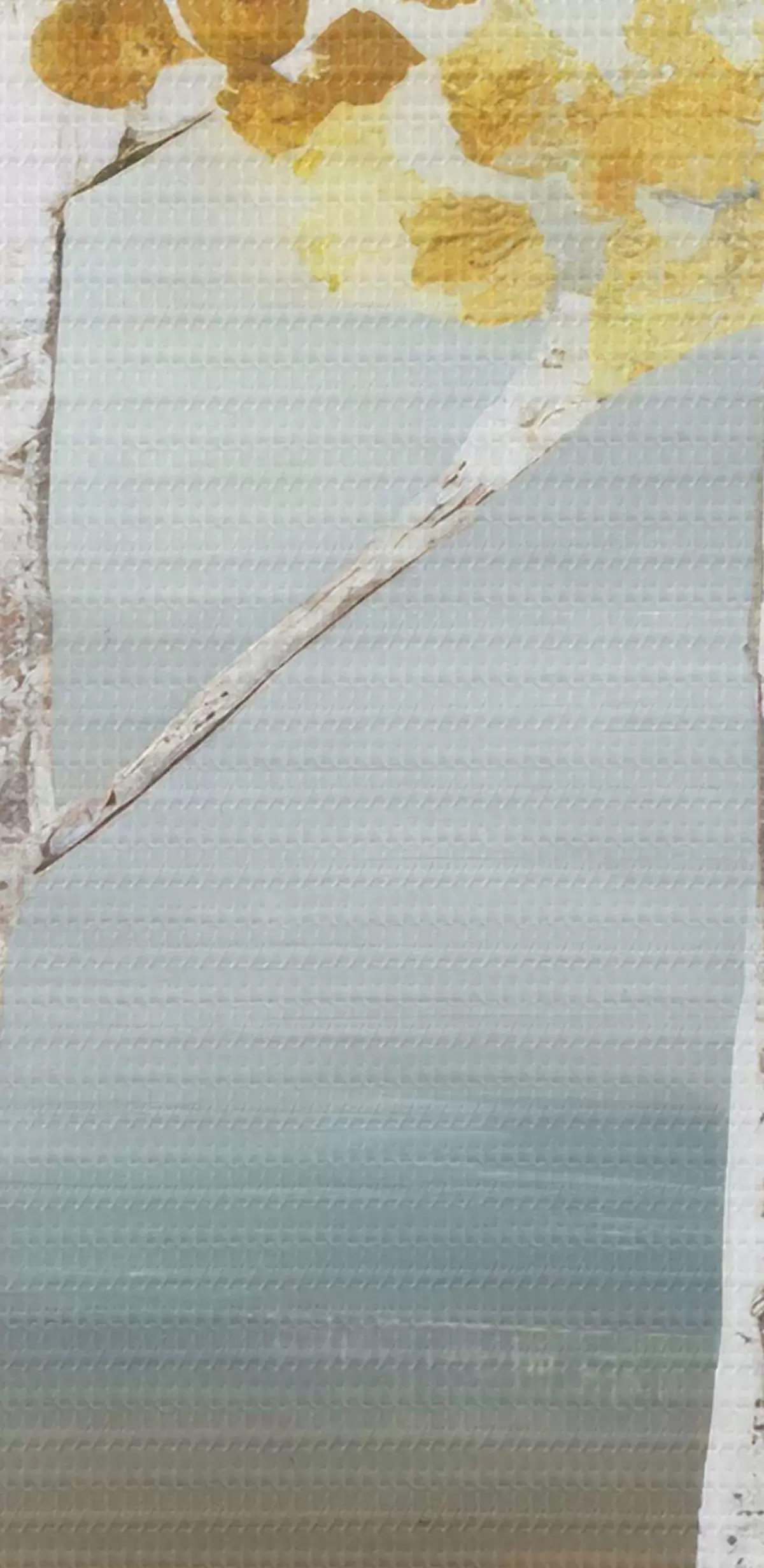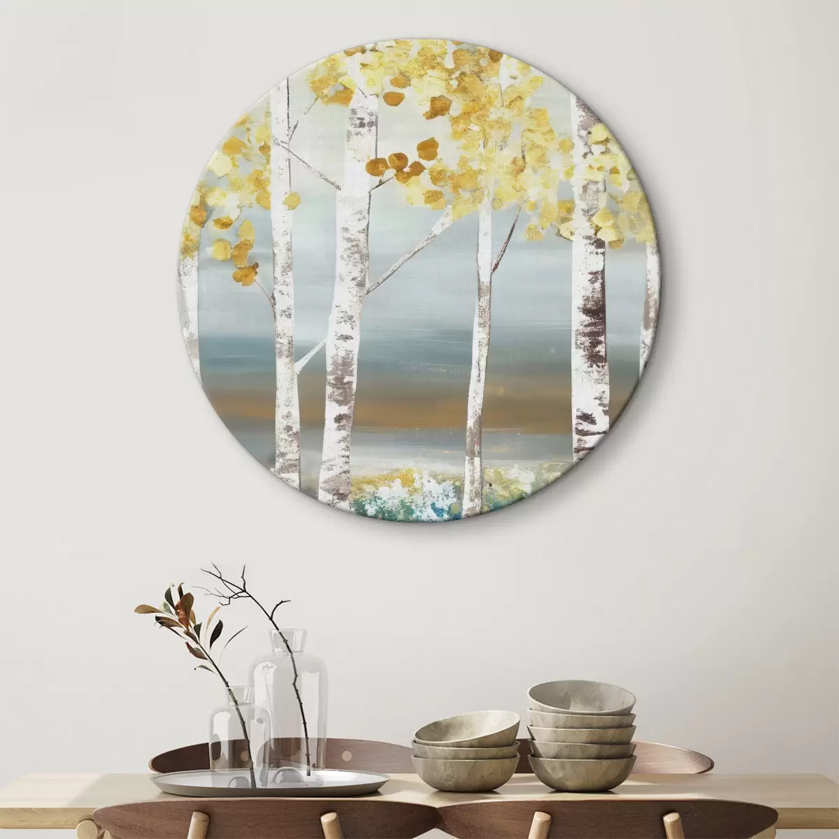 Tableaux rondes Peinture à l'huile avec des bouleaux sur fond de pluie Nr r34602