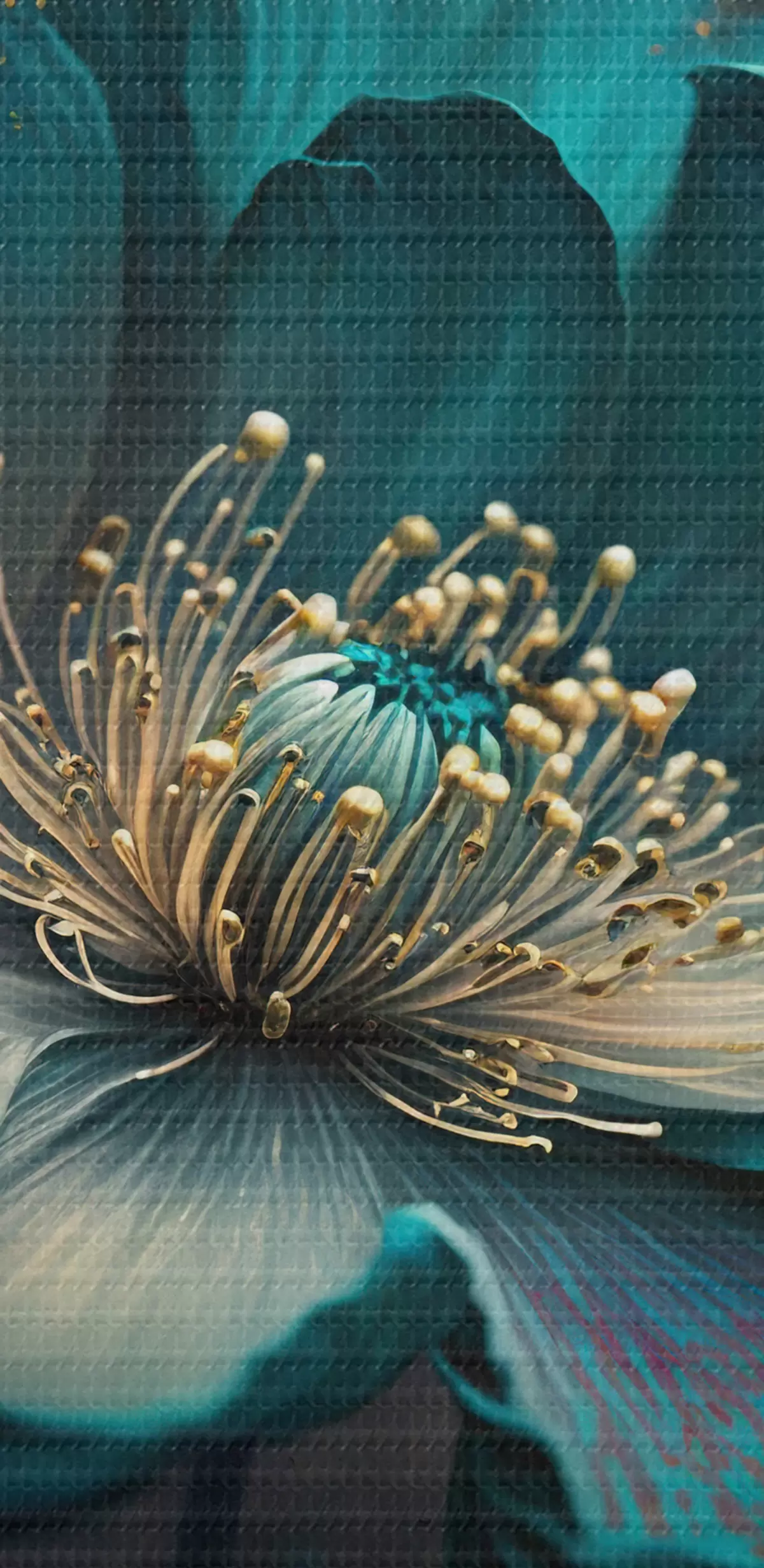 Tableaux rondes Fleur turquoise - gros plan r34854