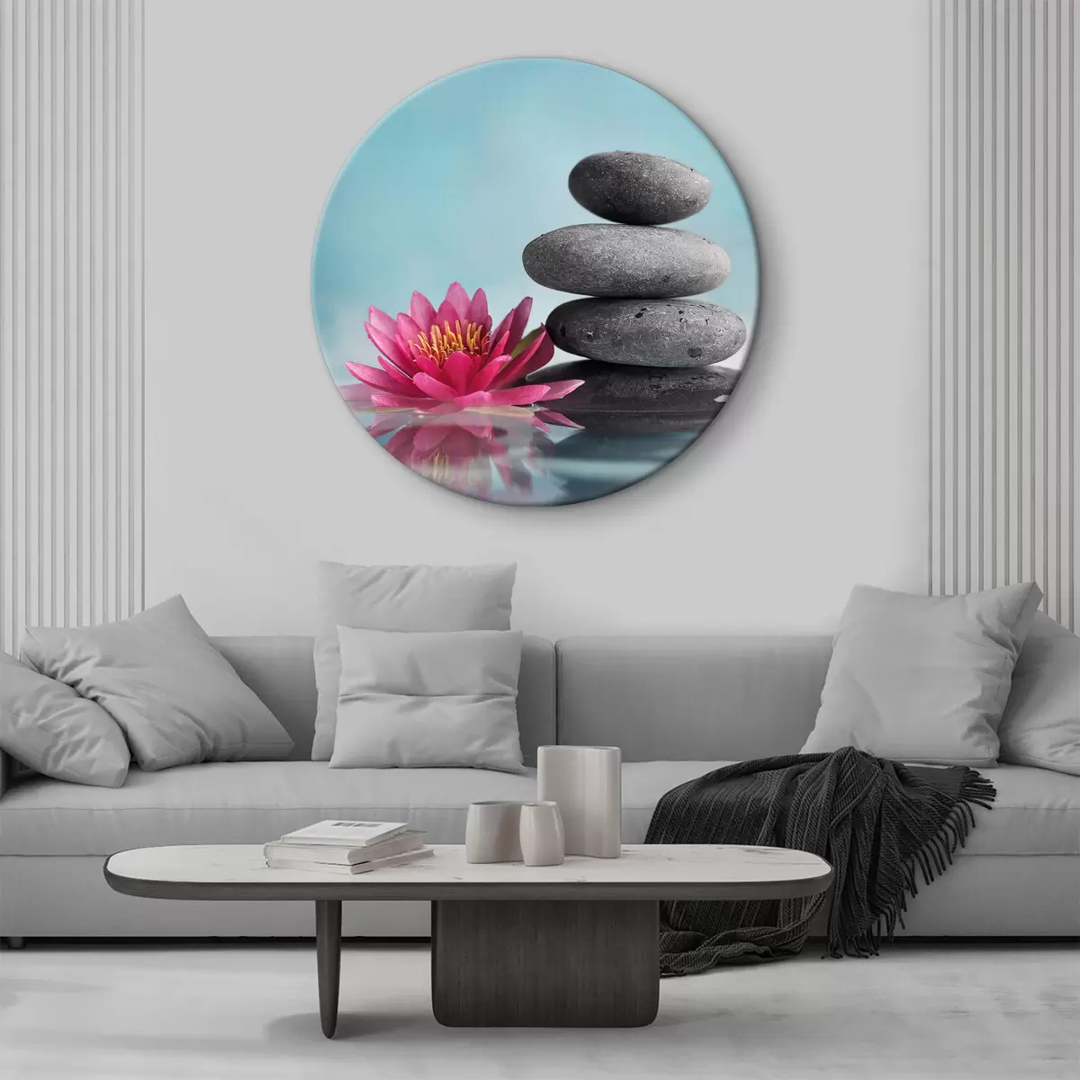 Tableaux rondes Lotus rose et pierres Nr r34932