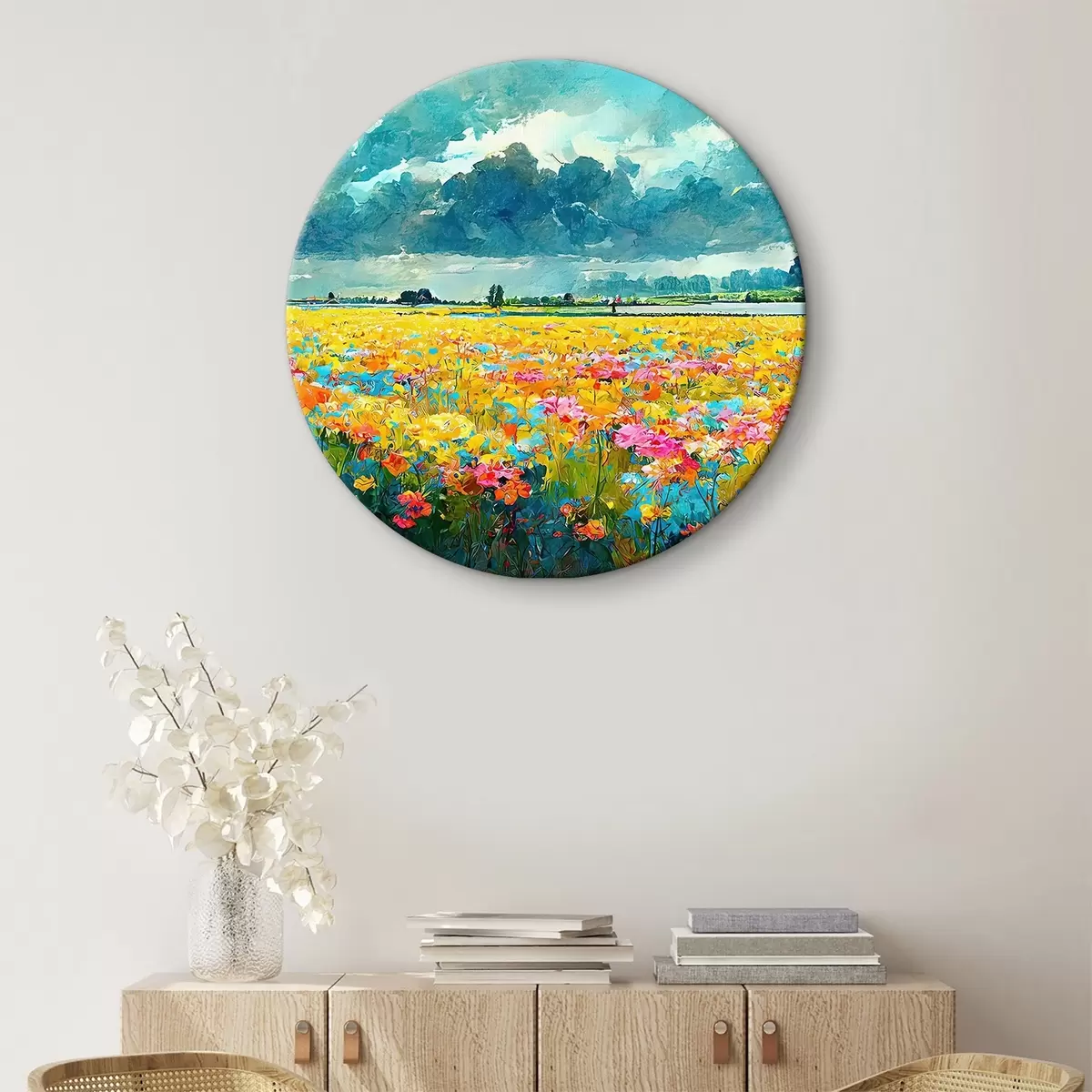 Tableaux rondes Fleurs sauvages sur fond de montagnes Nr r34944