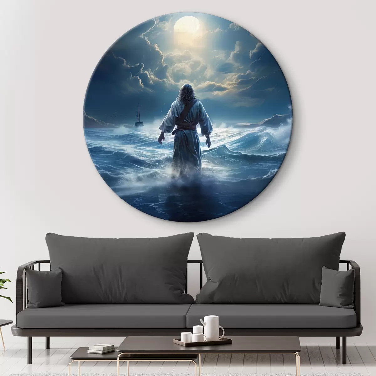 Tableaux rondes Un homme regardant la pleine lune la nuit Nr r35357