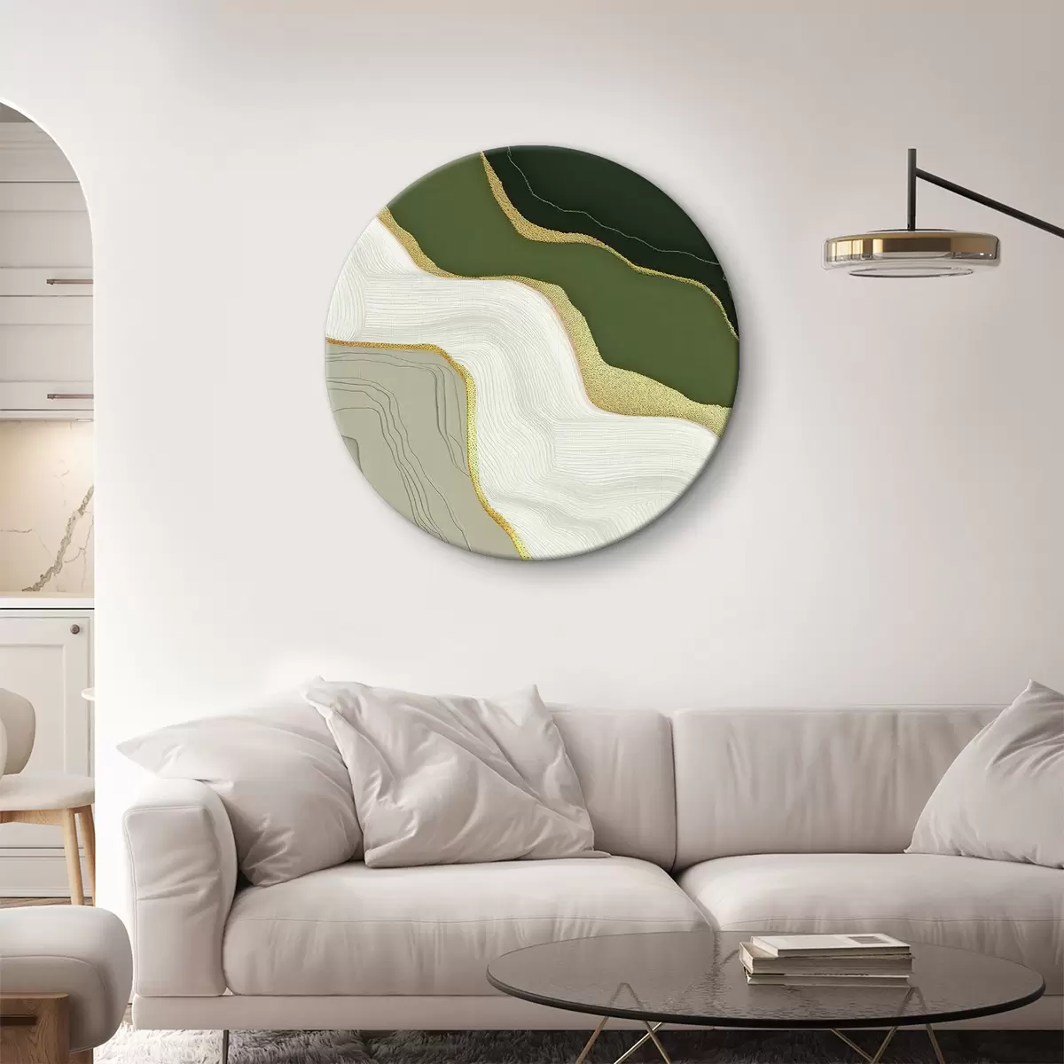 Tableaux rondes Une peinture à l'huile abstraite réalisée avec des peintures noires, blanches, vertes et grises Nr r35427