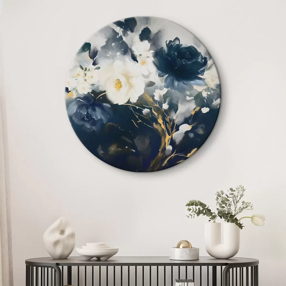 Tableaux rondes Aquarelle fleurs bleues Nr r35491