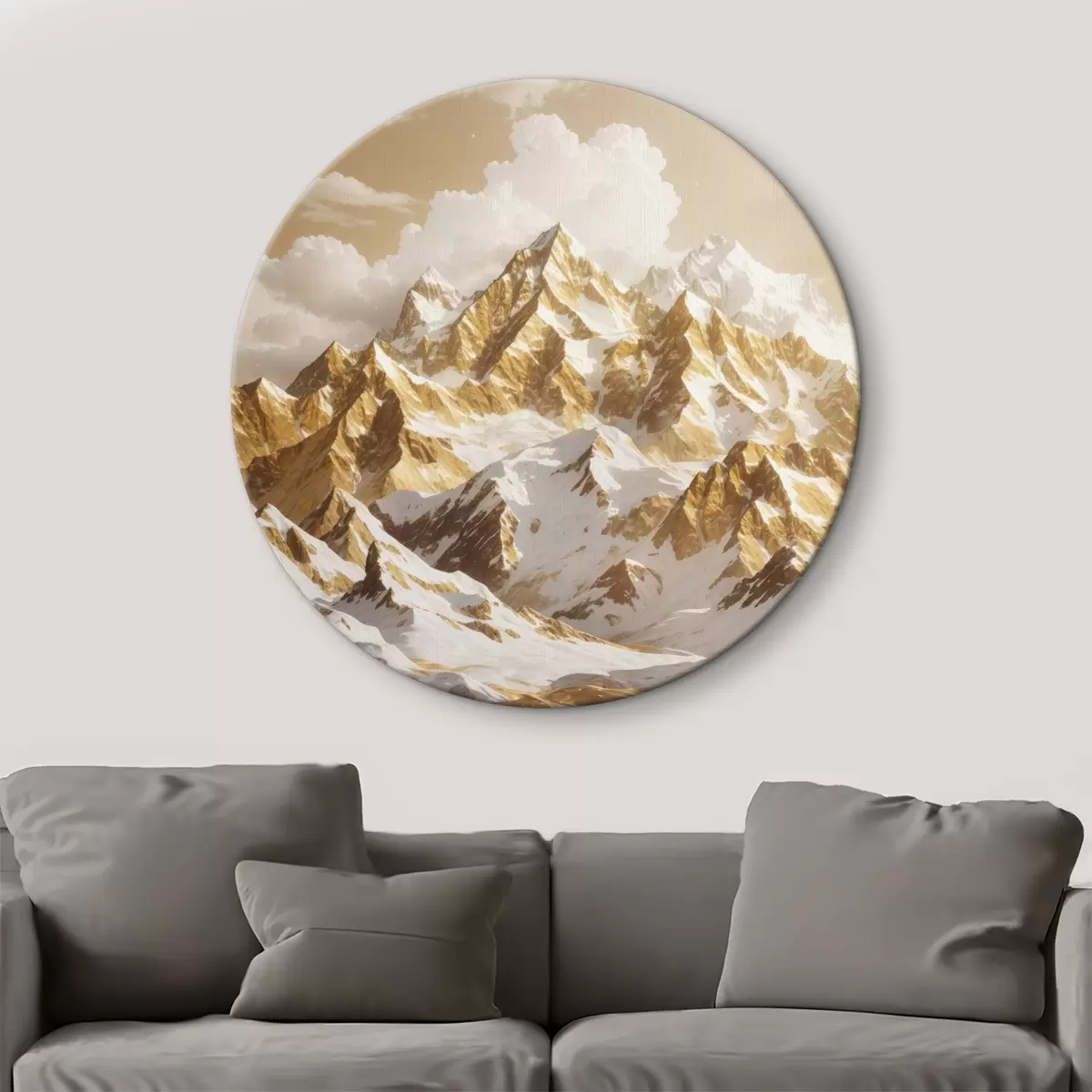 Tableaux rondes Des sommets majestueux sous un doux soleil Nr r35652