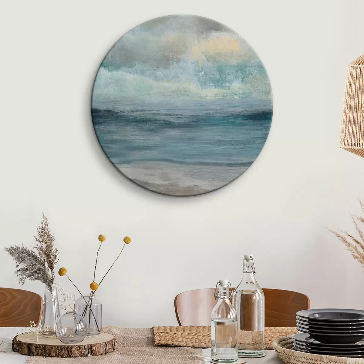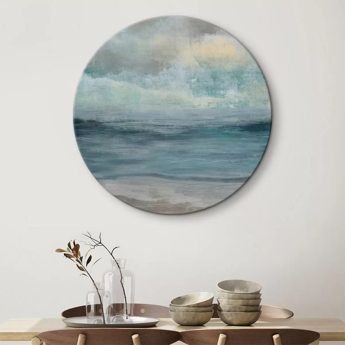 Tableaux rondes Abstraction bleue et fumée r35720