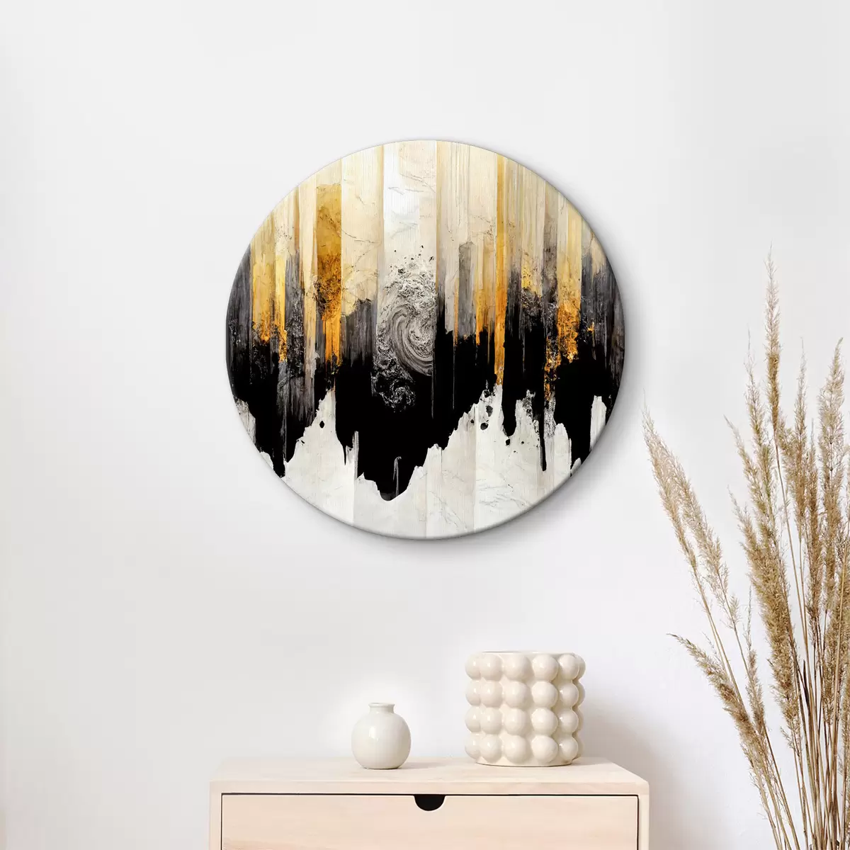 Tableaux rondes Image floue avec de la peinture blanche, noire et dorée r35735