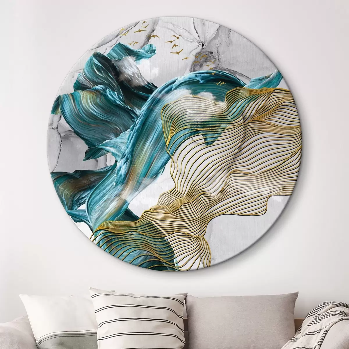 Tableaux rondes Vagues abstraites avec des motifs de lignes sarcelles et fluides r35797