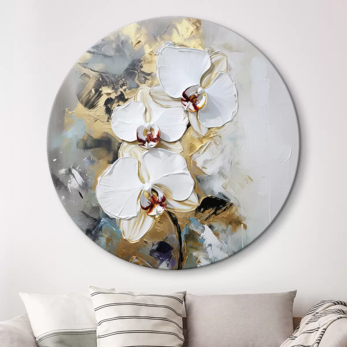 Tableaux rondes Symphonie d'orchidées avec coups de pinceau abstraits Nr r35904