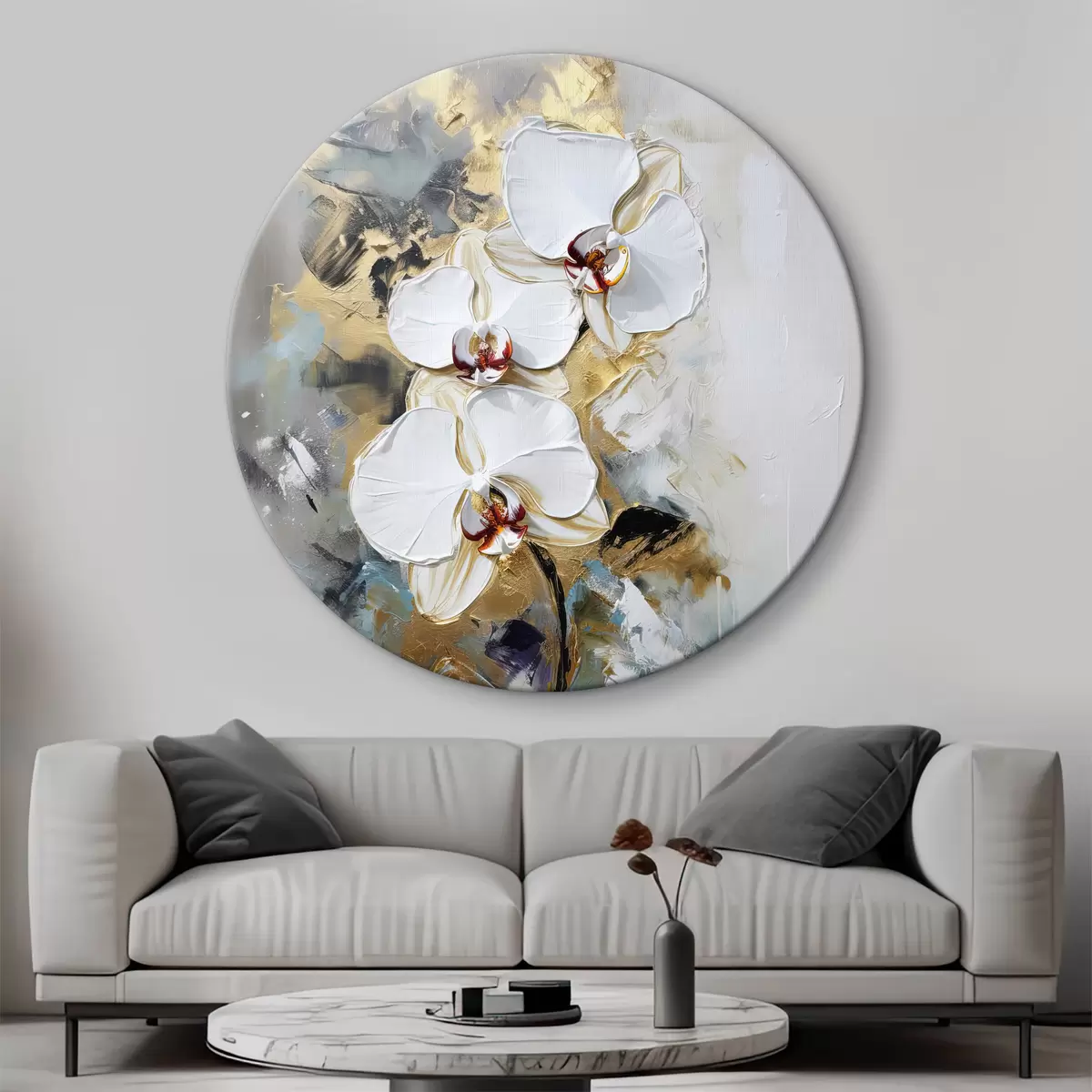 Tableaux rondes Symphonie d'orchidées avec coups de pinceau abstraits r35904