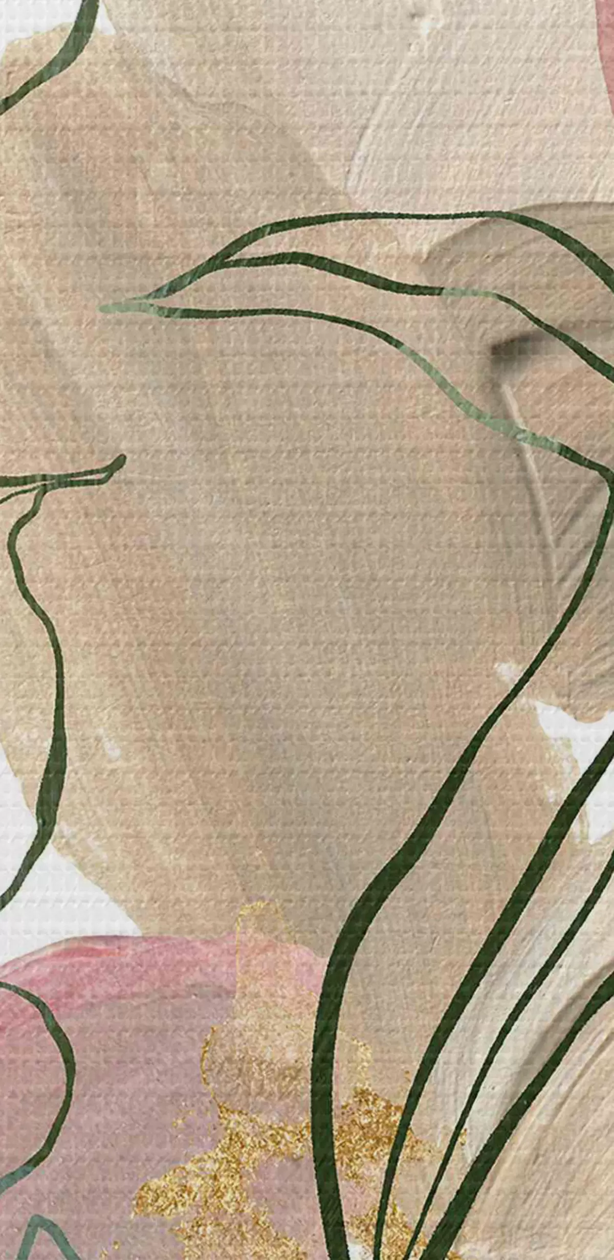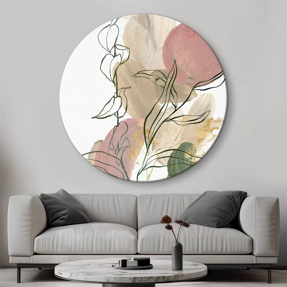 Tableaux rondes Composition d'automne en aquarelle avec des branches linéaires, des taches roses et vertes Nr r35949