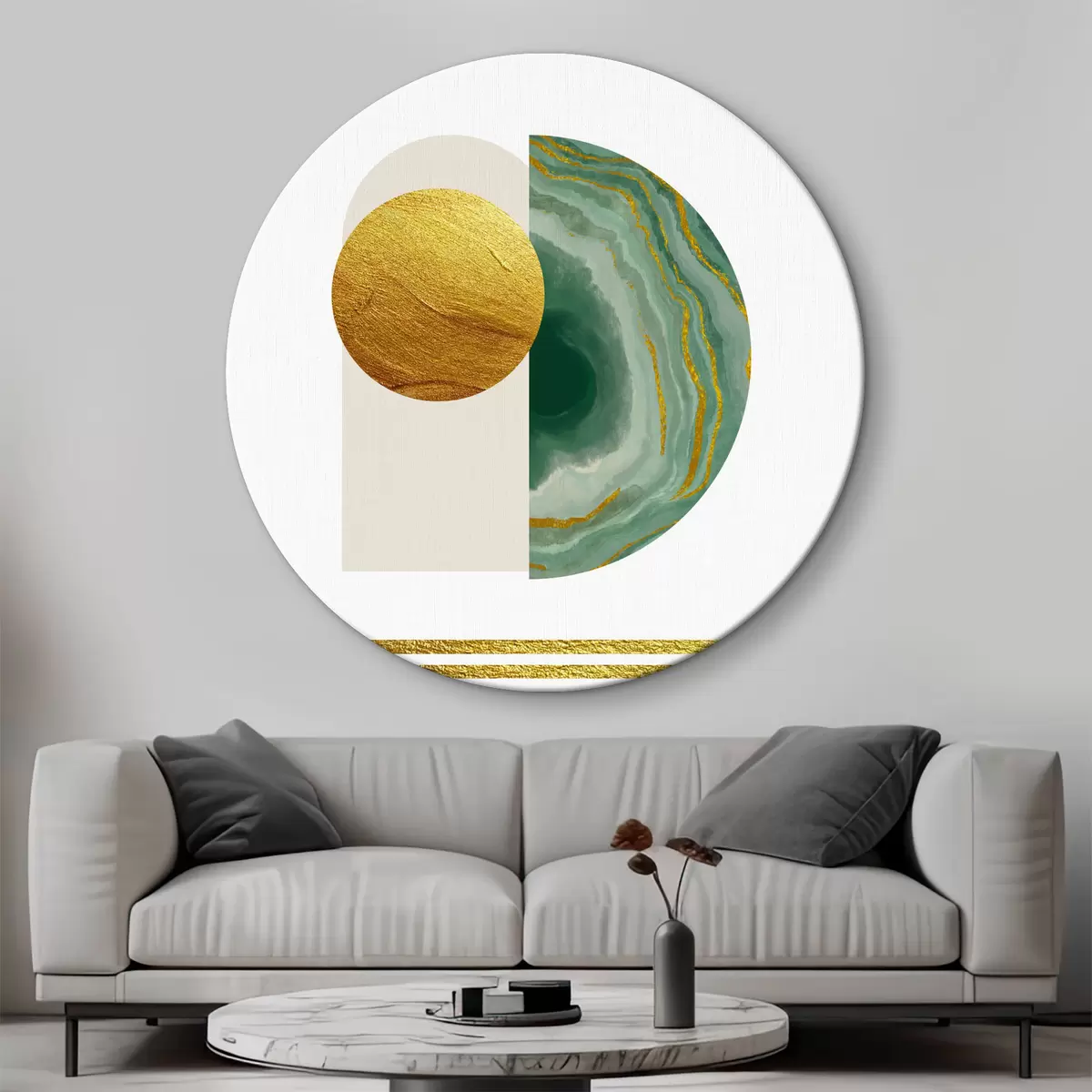 Tableaux rondes Formes abstraites avec accents verts r35986