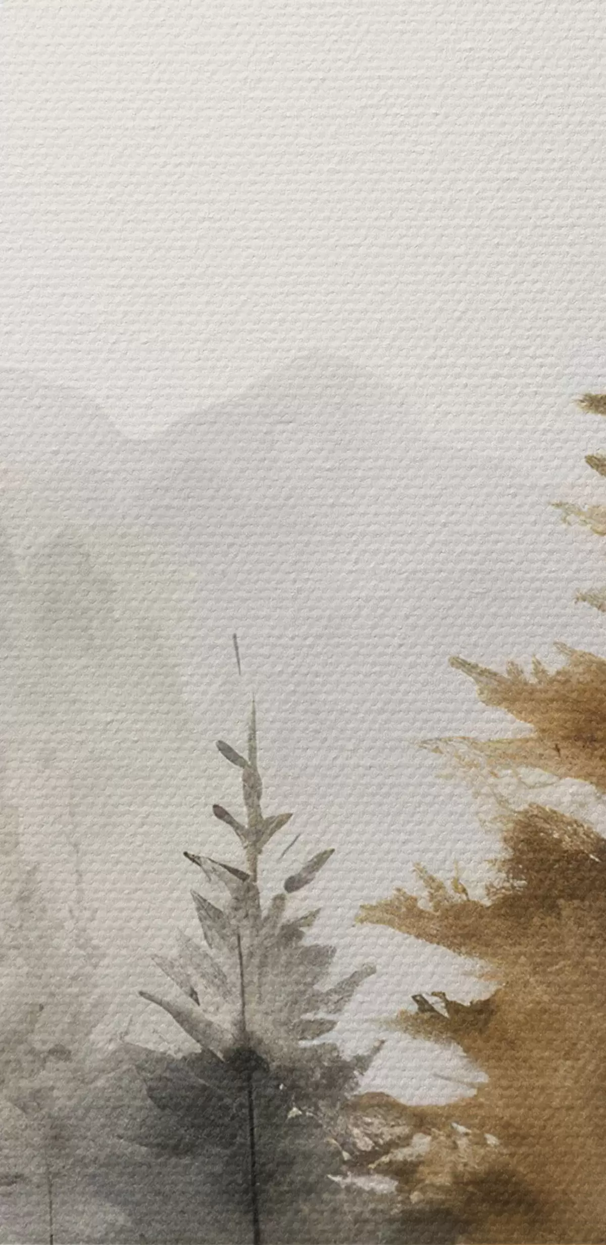 Tableaux rondes Aquarelle de sapins sur fond de montagnes Nr r36010