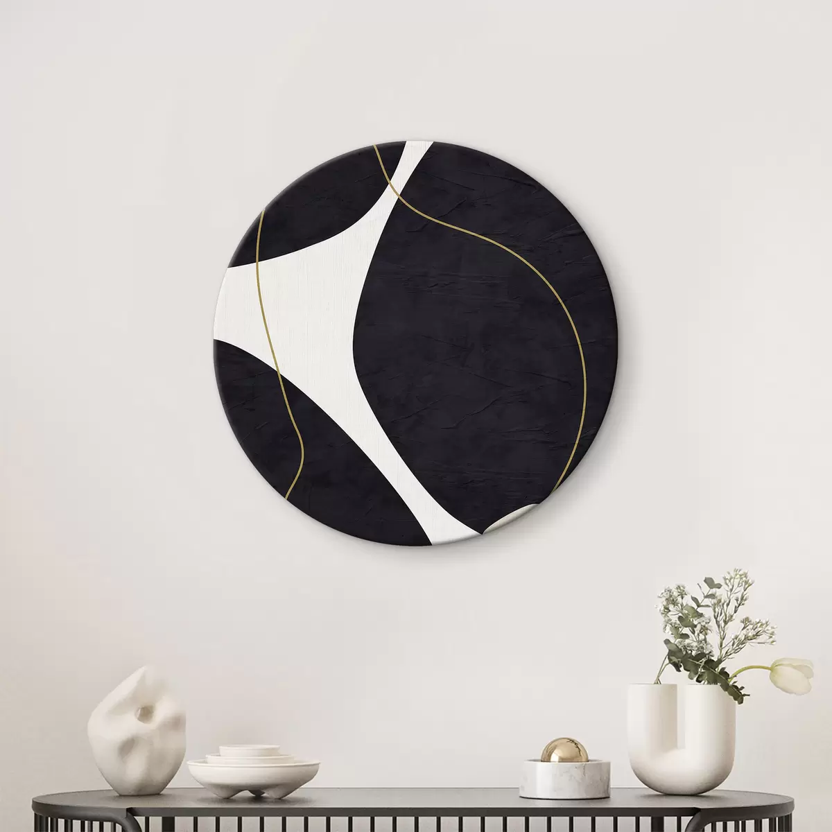 Tableaux rondes Des tourbillons élégants dans une harmonie monochrome r36036