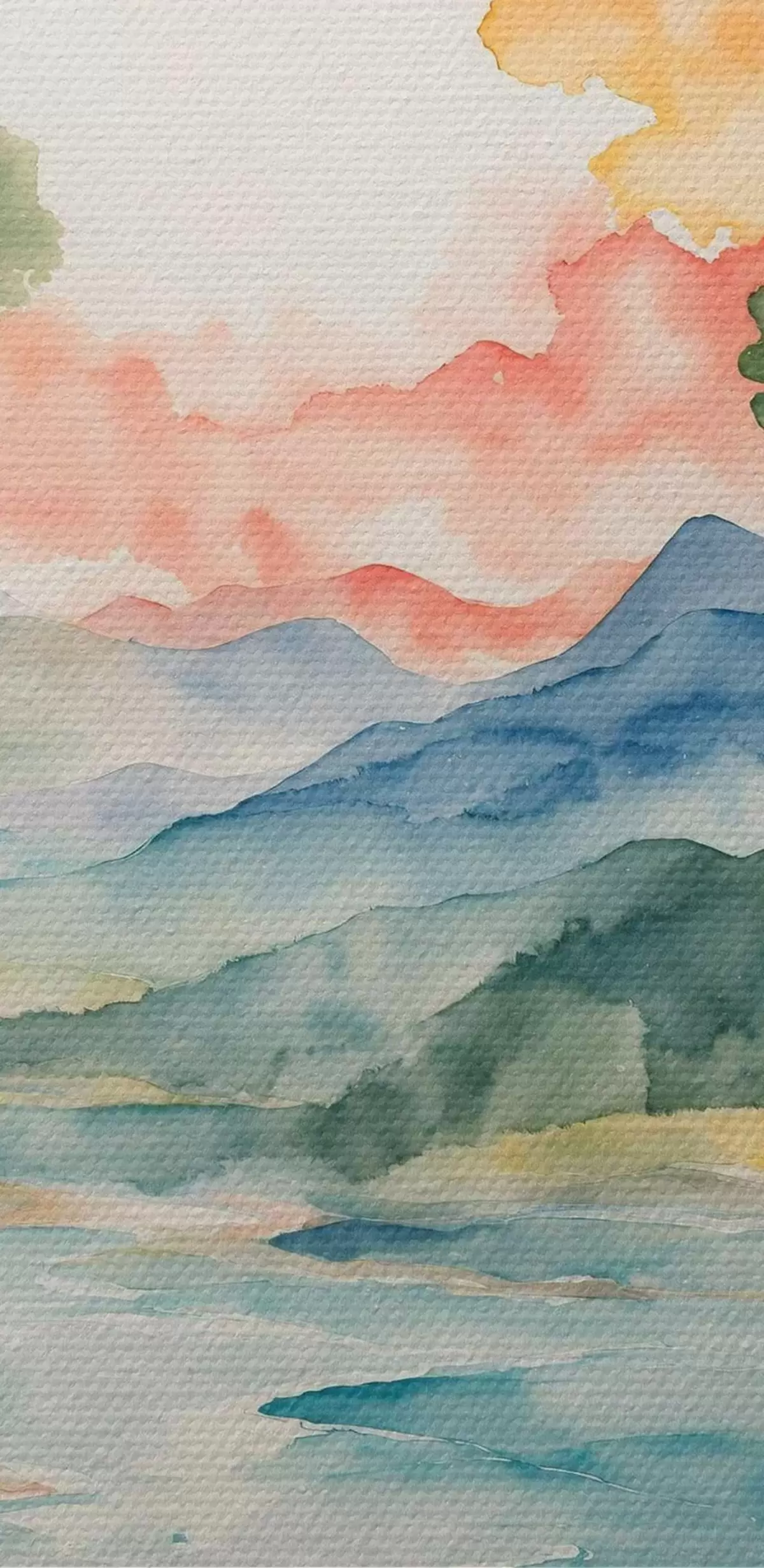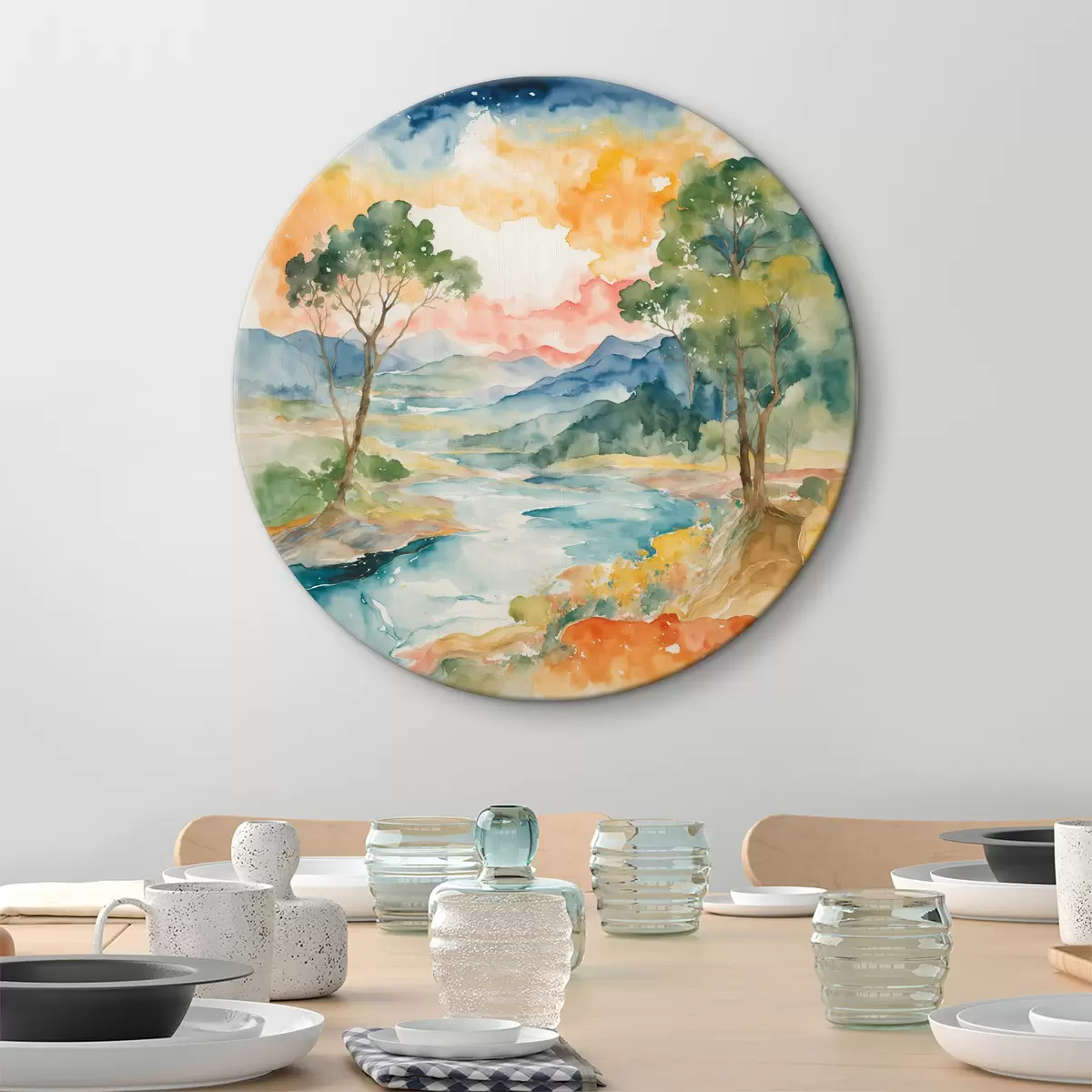 Tableaux rondes Rivière et arbres en aquarelle Nr r36054