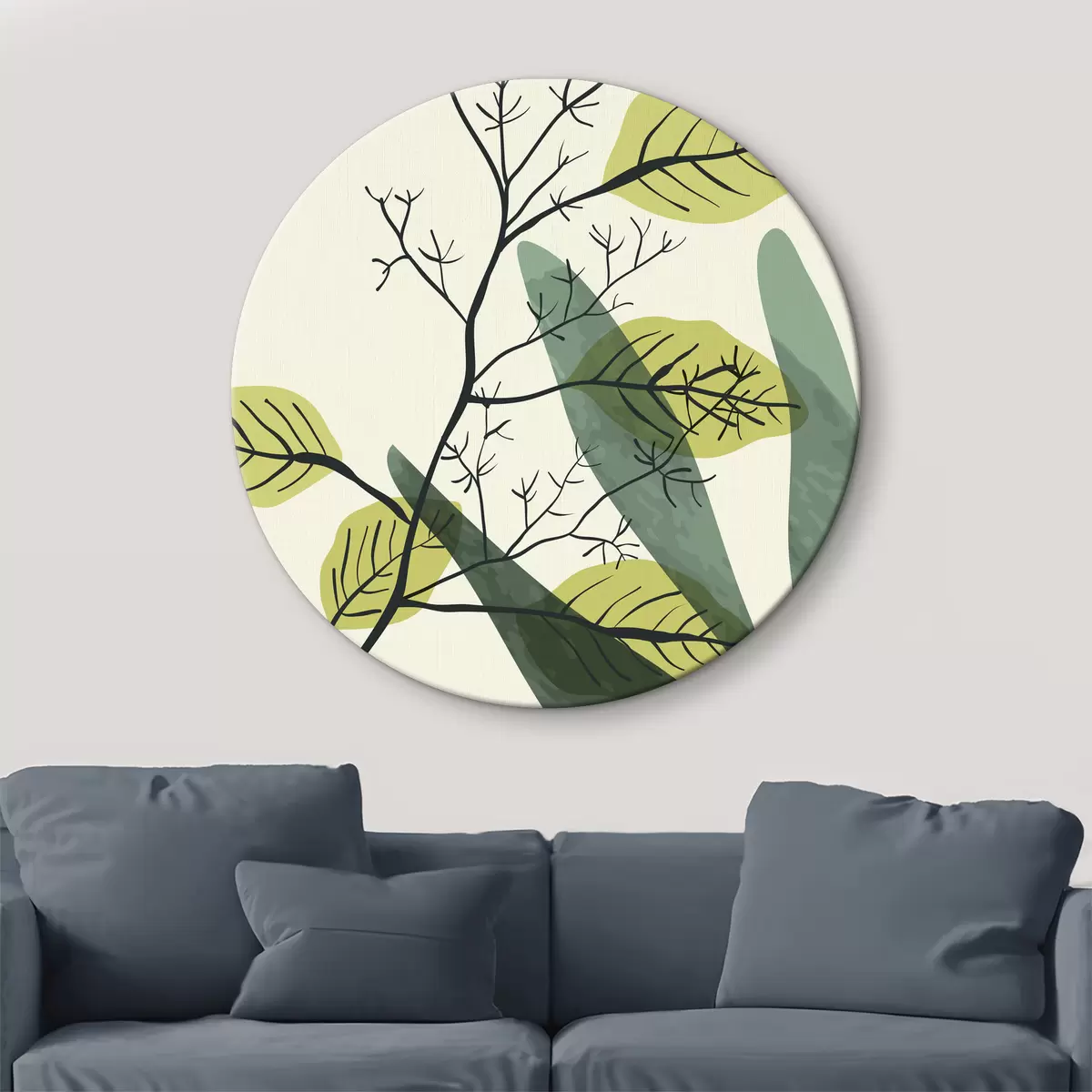 Tableaux rondes Dessin à l'aquarelle d'une branche avec des feuilles jaunes Nr r36134