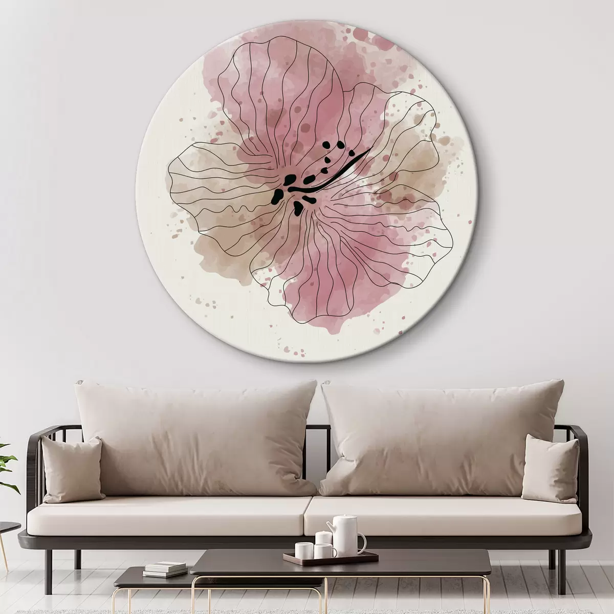Tableaux rondes Fard à joues rose en aquarelle Nr r36136