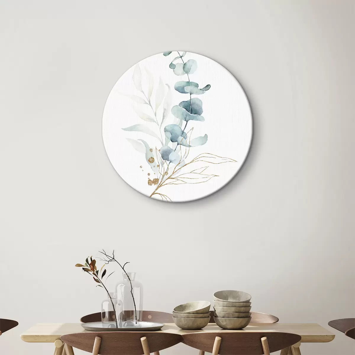 Tableaux rondes Dessin abstrait à l'aquarelle de branches avec des feuilles bleues r36139