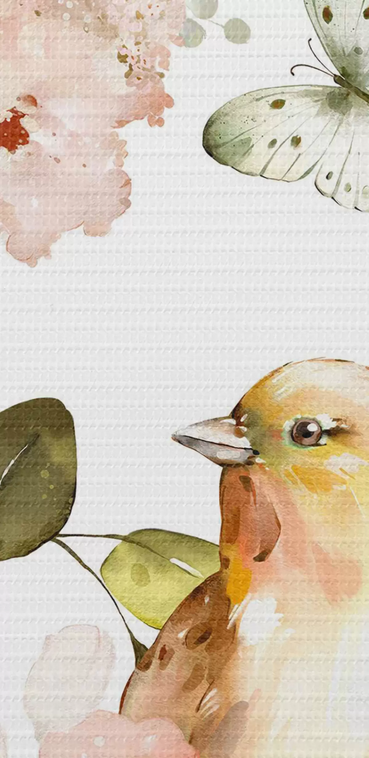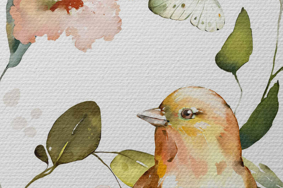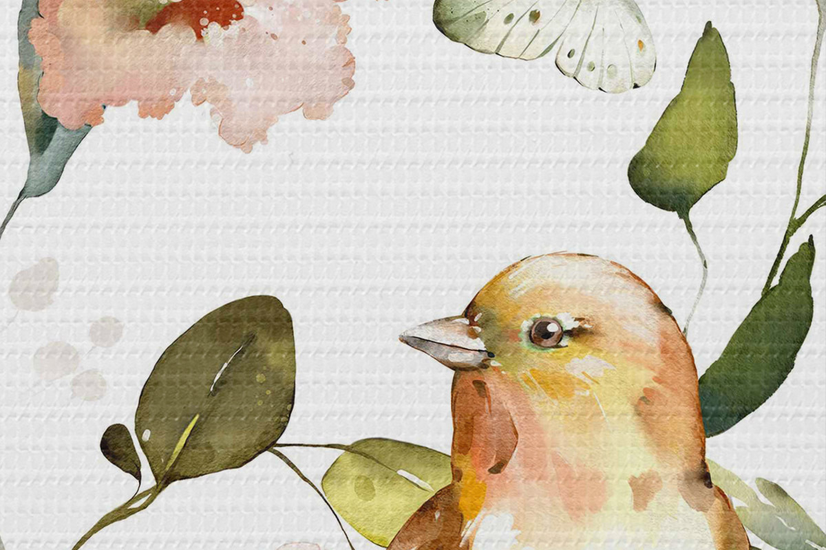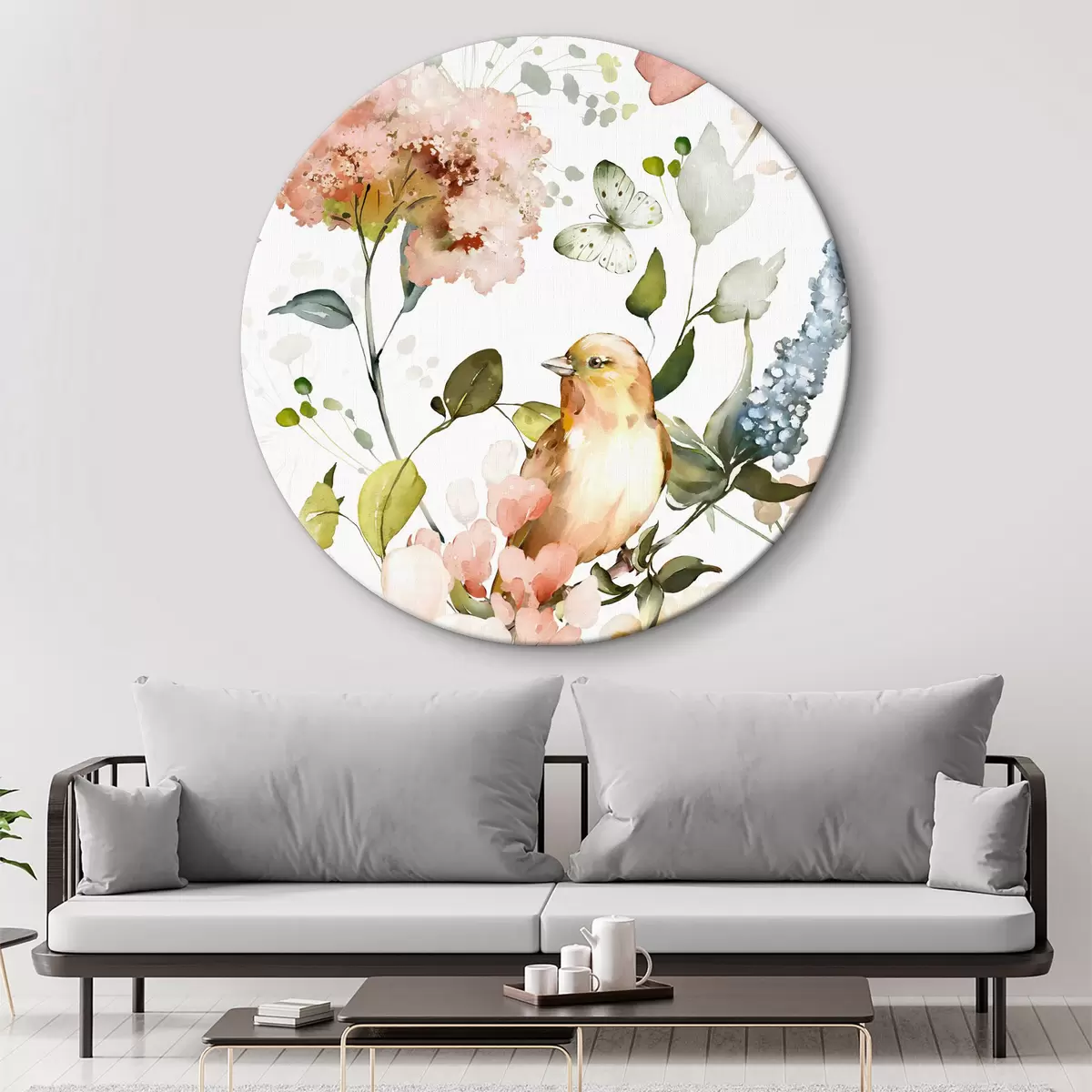 Tableaux rondes Aquarelle représentant des fleurs, des oiseaux et des papillons sur fond blanc Nr r36153