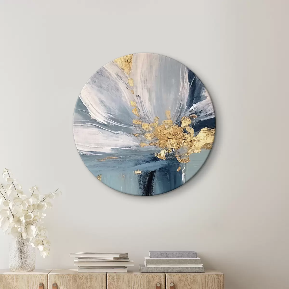 Tableaux rondes Grande fleur bleue avec noyau jaune r36165