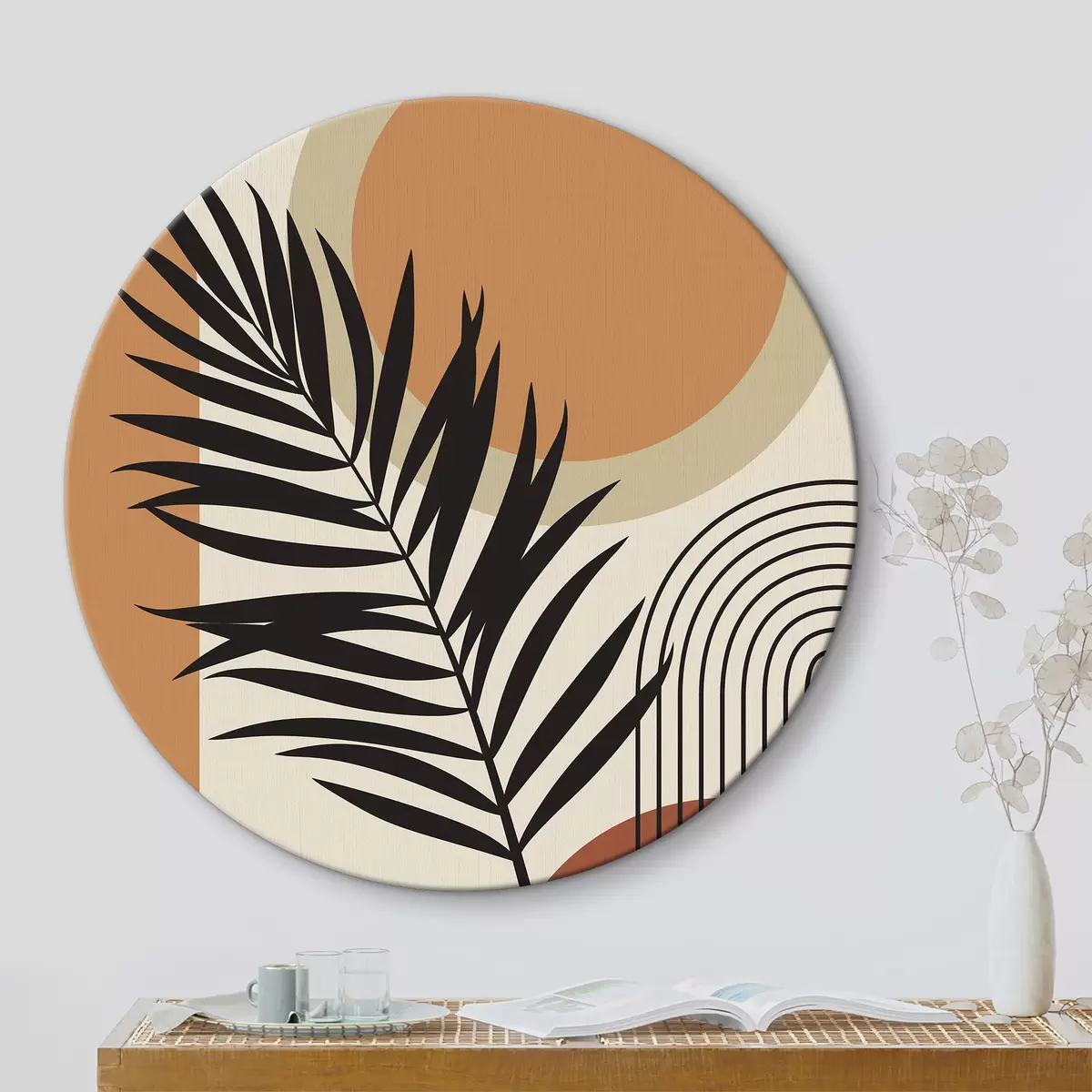 Tableaux rondes Feuille de palmier sur fond géométrique Nr r36170