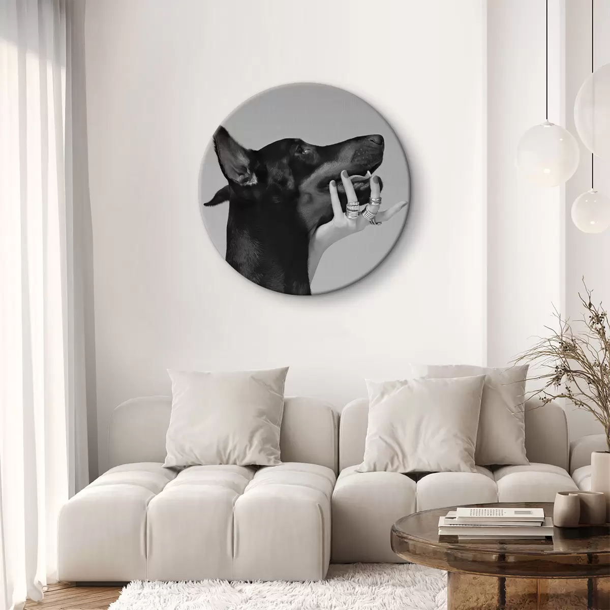 Tableaux rondes Doberman noir et blanc avec un nez haut r36178
