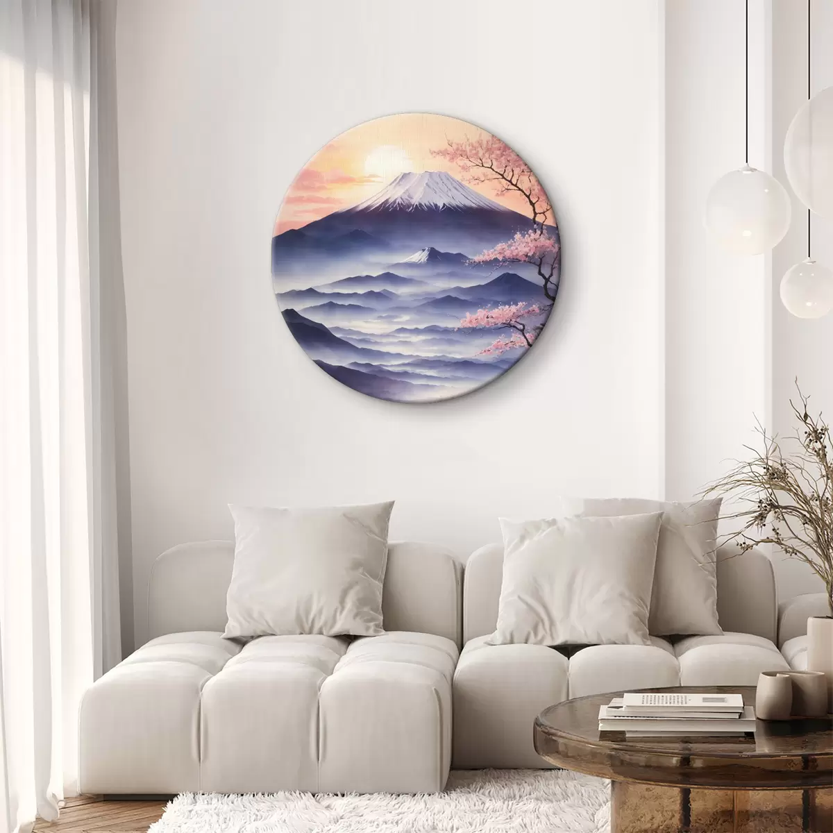 Tableaux rondes Vue d'un volcan paisible au sommet enneigé Nr r36233