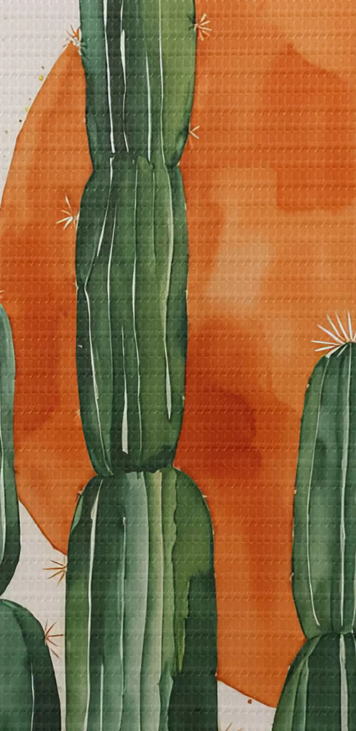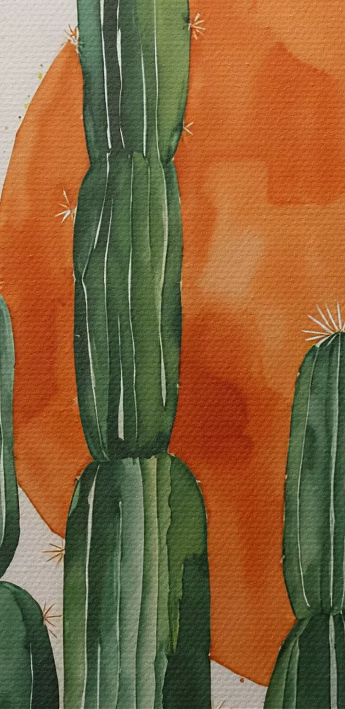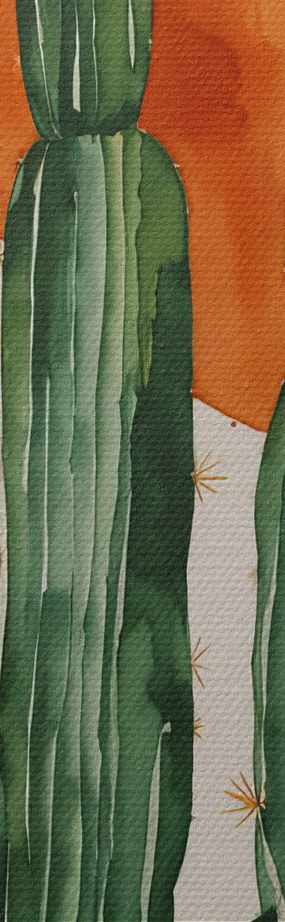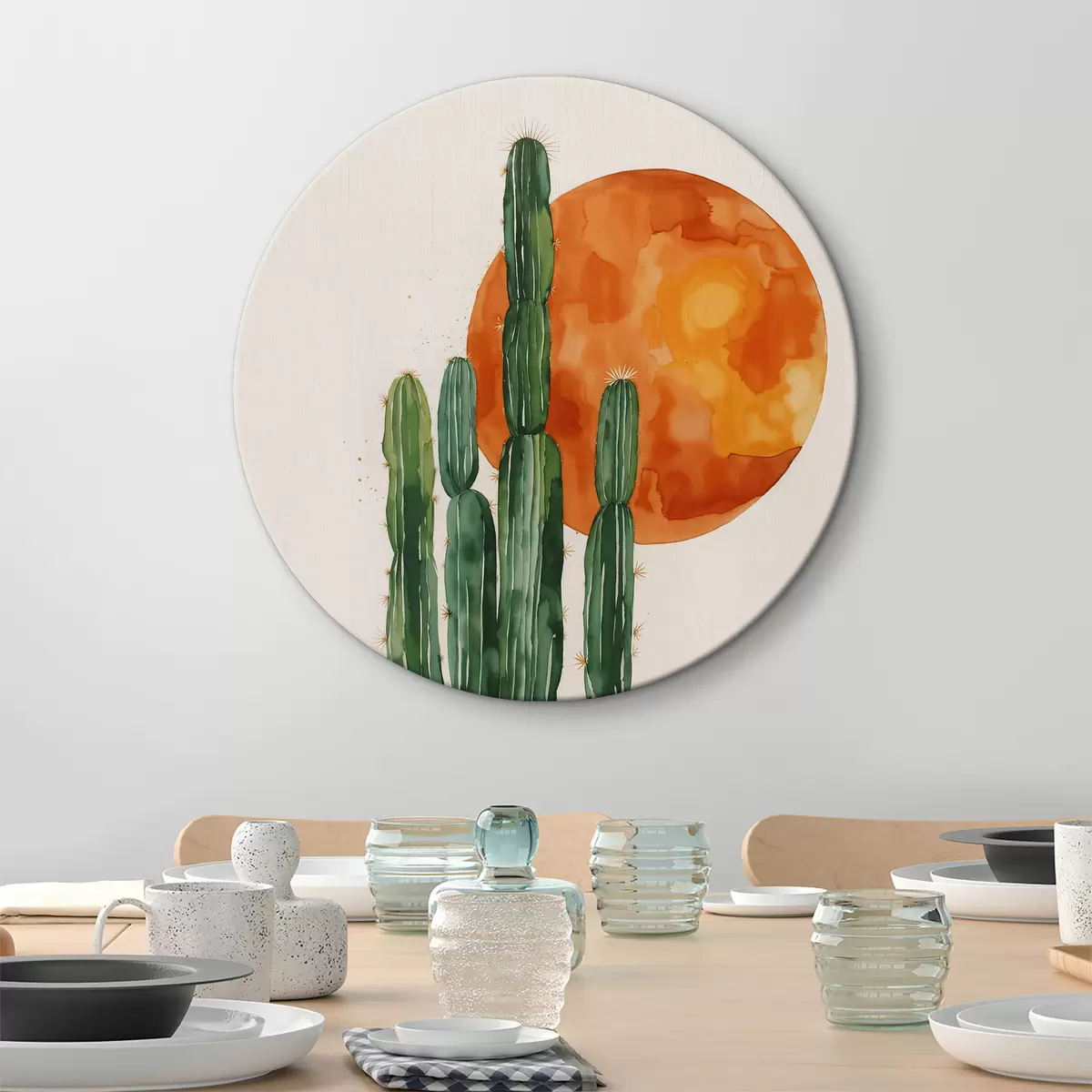 Tableaux rondes Cactus dans le désert sur fond de soleil en aquarelle Nr r36269