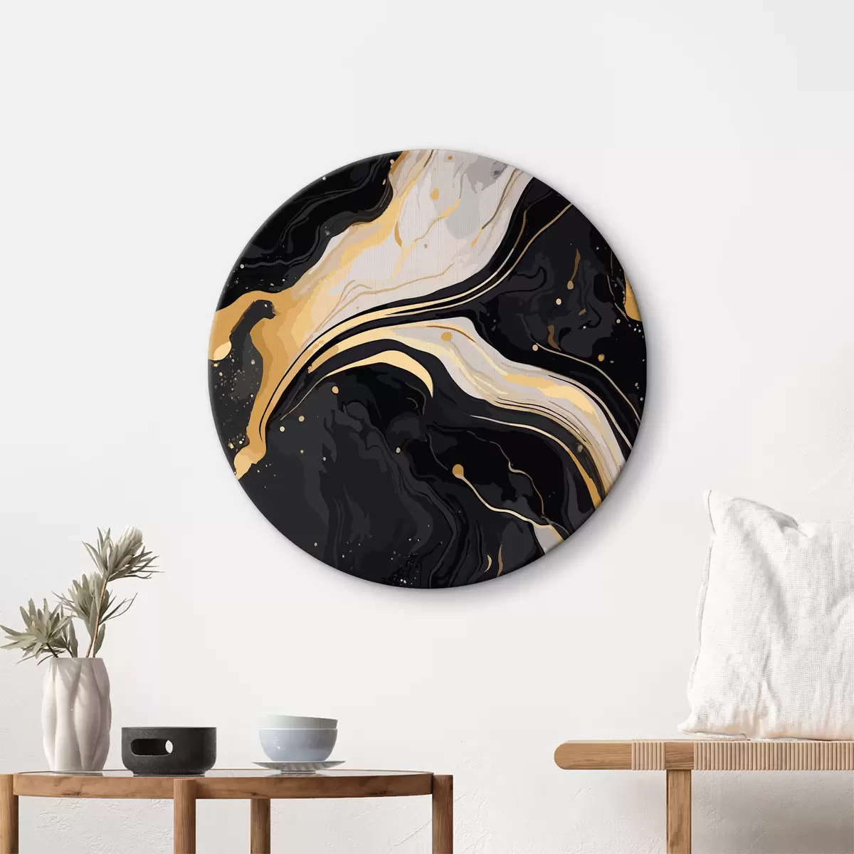 Tableaux rondes Marbre noir élégant avec or r36375