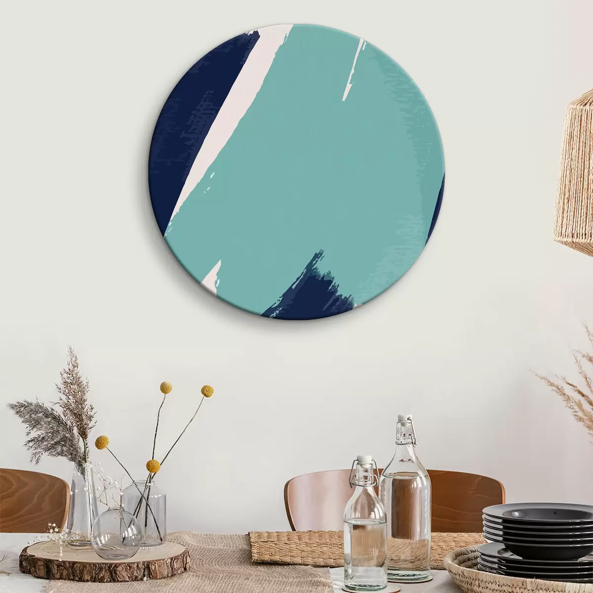 Tableaux rondes Coups de pinceau en bleu et turquoise r36416